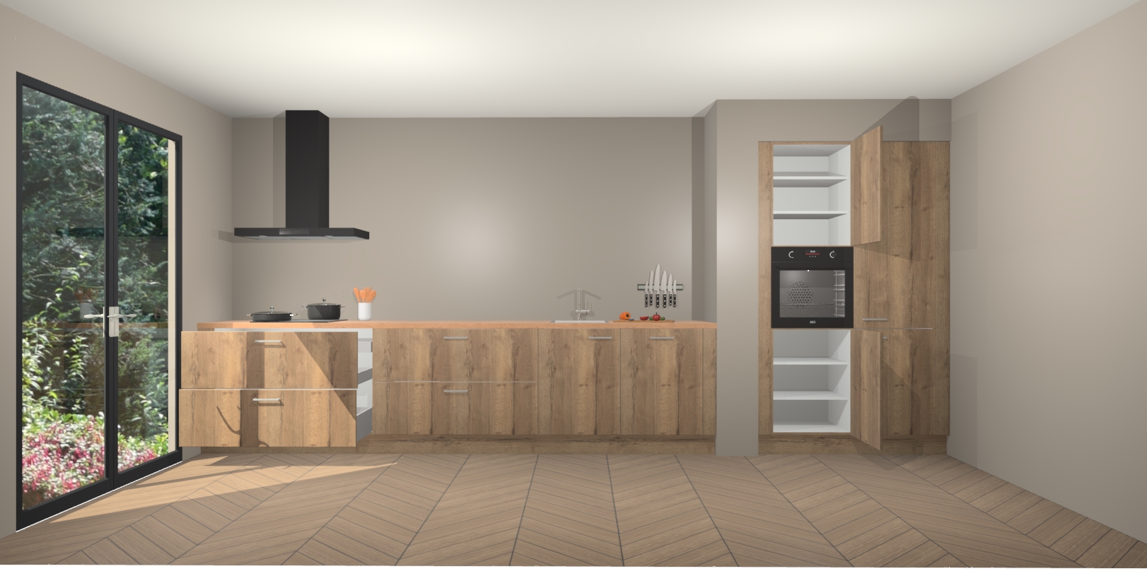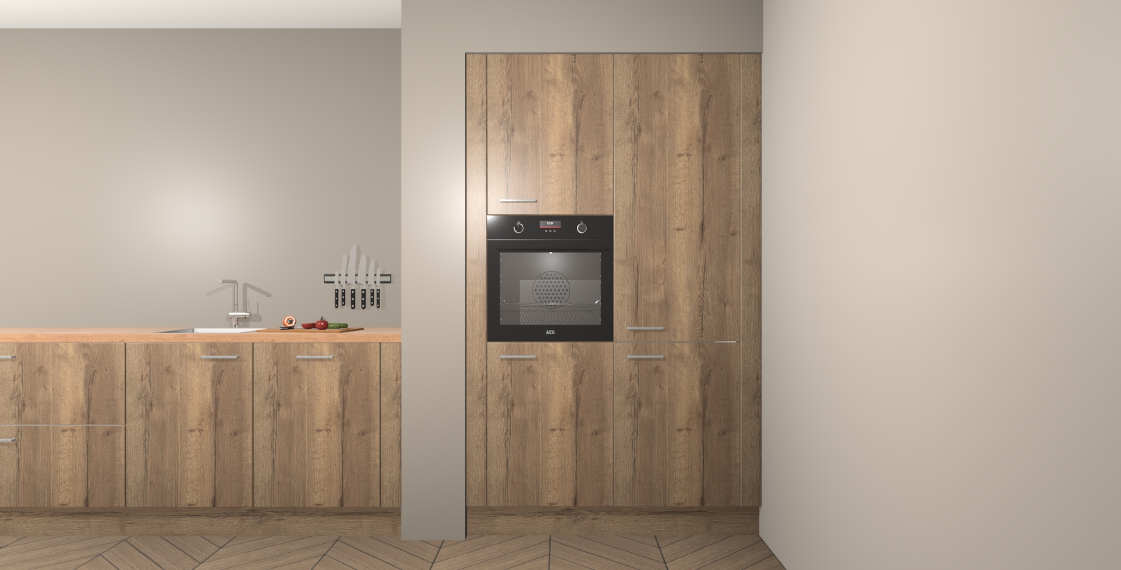 Maak kennis met de Chocolade Eiken keuken Calgary - de perfecte aanvulling voor uw moderne keuken! Ervaar tijdloos design, elegantie en een chique uitstraling met onze handgrepen, soft-close deuren en veel opbergruimte. Dit alles wordt aangeboden tegen een vaste lage prijs voor ongeëvenaarde Duitse keukenkwaliteit!