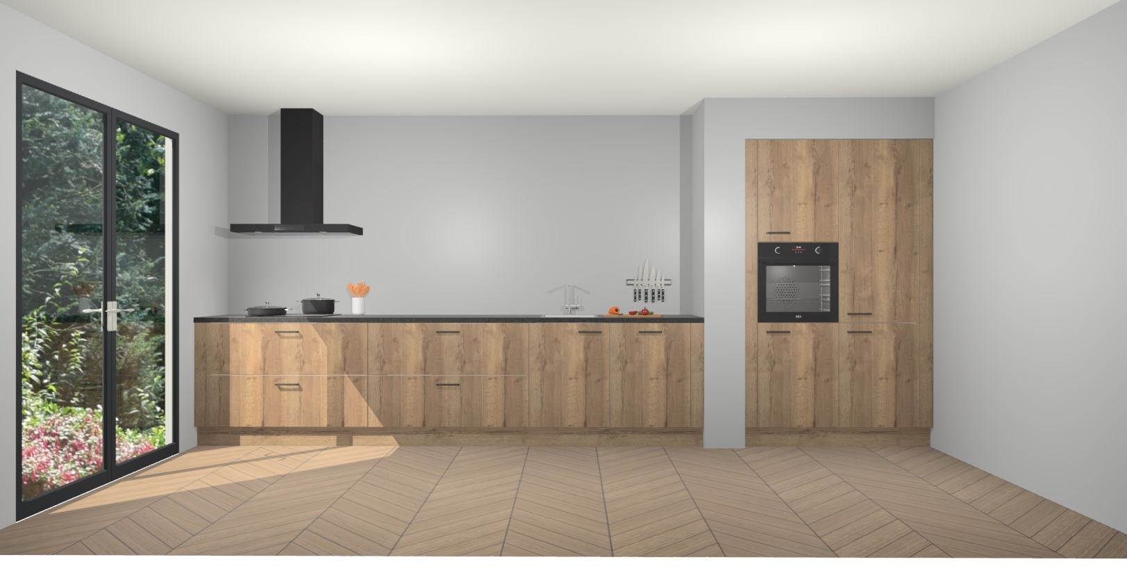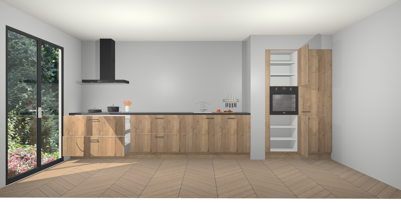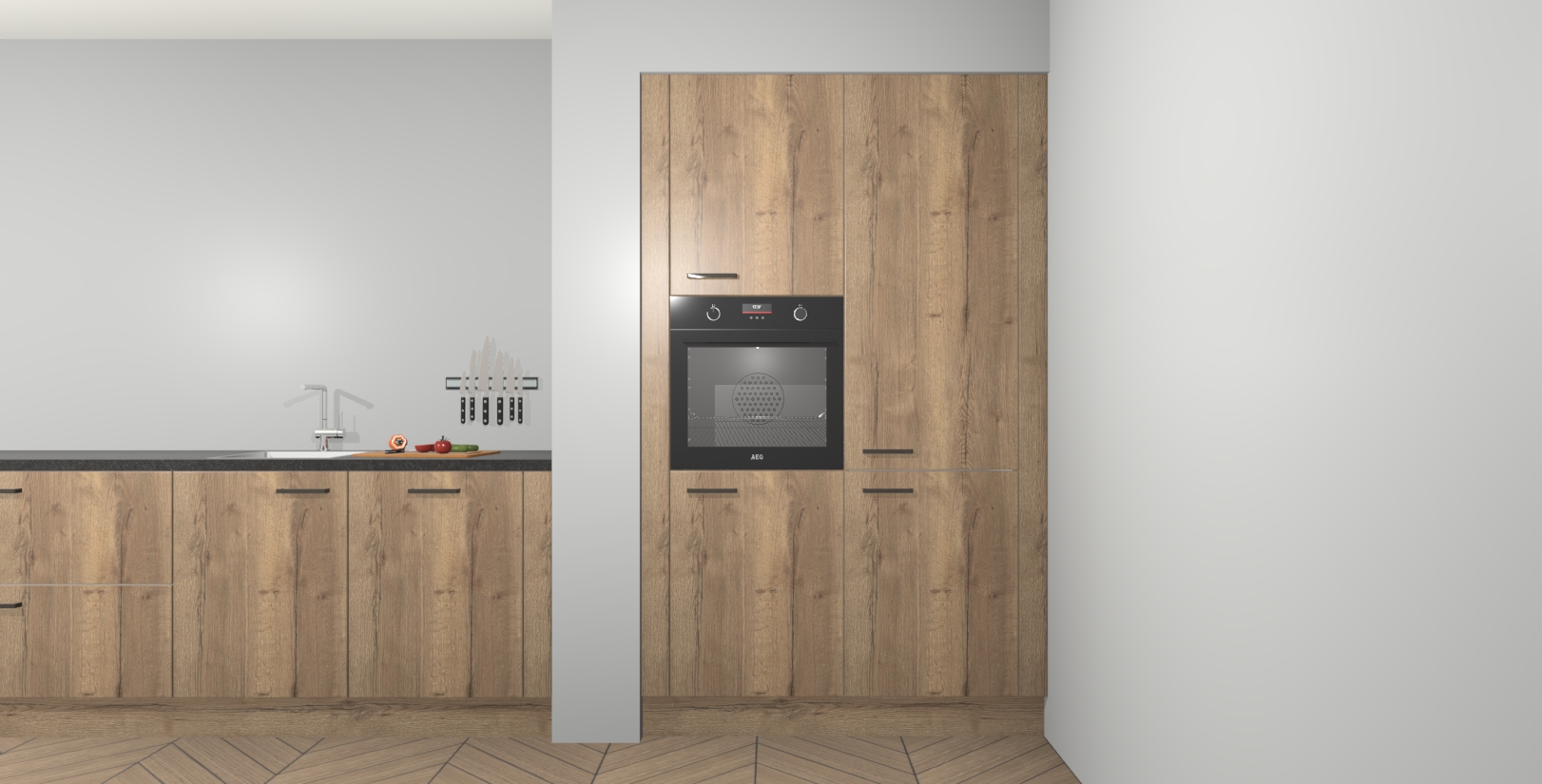 Maak kennis met de Chocolade Eiken keuken Calgary - de perfecte aanvulling voor uw moderne keuken! Ervaar tijdloos design, elegantie en een chique uitstraling met onze handgrepen, soft-close deuren en veel opbergruimte. Dit alles wordt aangeboden tegen een vaste lage prijs voor ongeëvenaarde Duitse keukenkwaliteit!