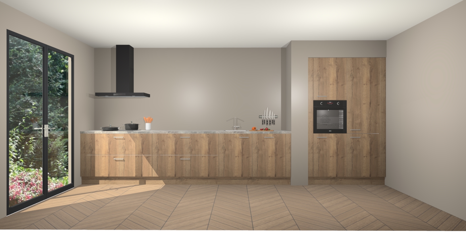 Maak kennis met de Chocolade Eiken keuken Calgary - de perfecte aanvulling voor uw moderne keuken! Ervaar tijdloos design, elegantie en een chique uitstraling met onze handgrepen, soft-close deuren en veel opbergruimte. Dit alles wordt aangeboden tegen een vaste lage prijs voor ongeëvenaarde Duitse keukenkwaliteit!