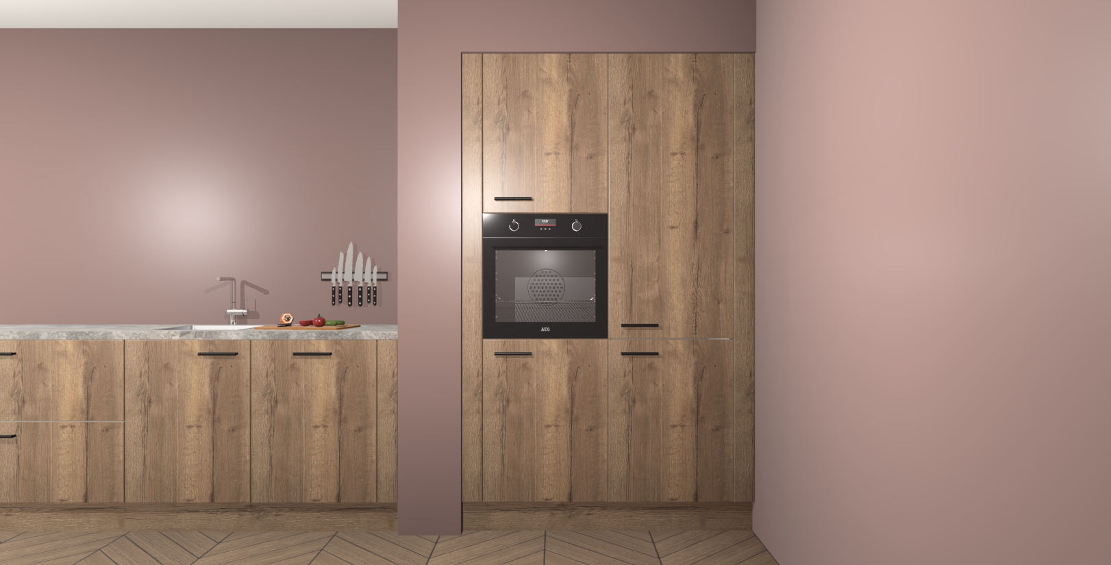 Maak kennis met de Chocolade Eiken keuken Calgary - de perfecte aanvulling voor uw moderne keuken! Ervaar tijdloos design, elegantie en een chique uitstraling met onze handgrepen, soft-close deuren en veel opbergruimte. Dit alles wordt aangeboden tegen een vaste lage prijs voor ongeëvenaarde Duitse keukenkwaliteit!