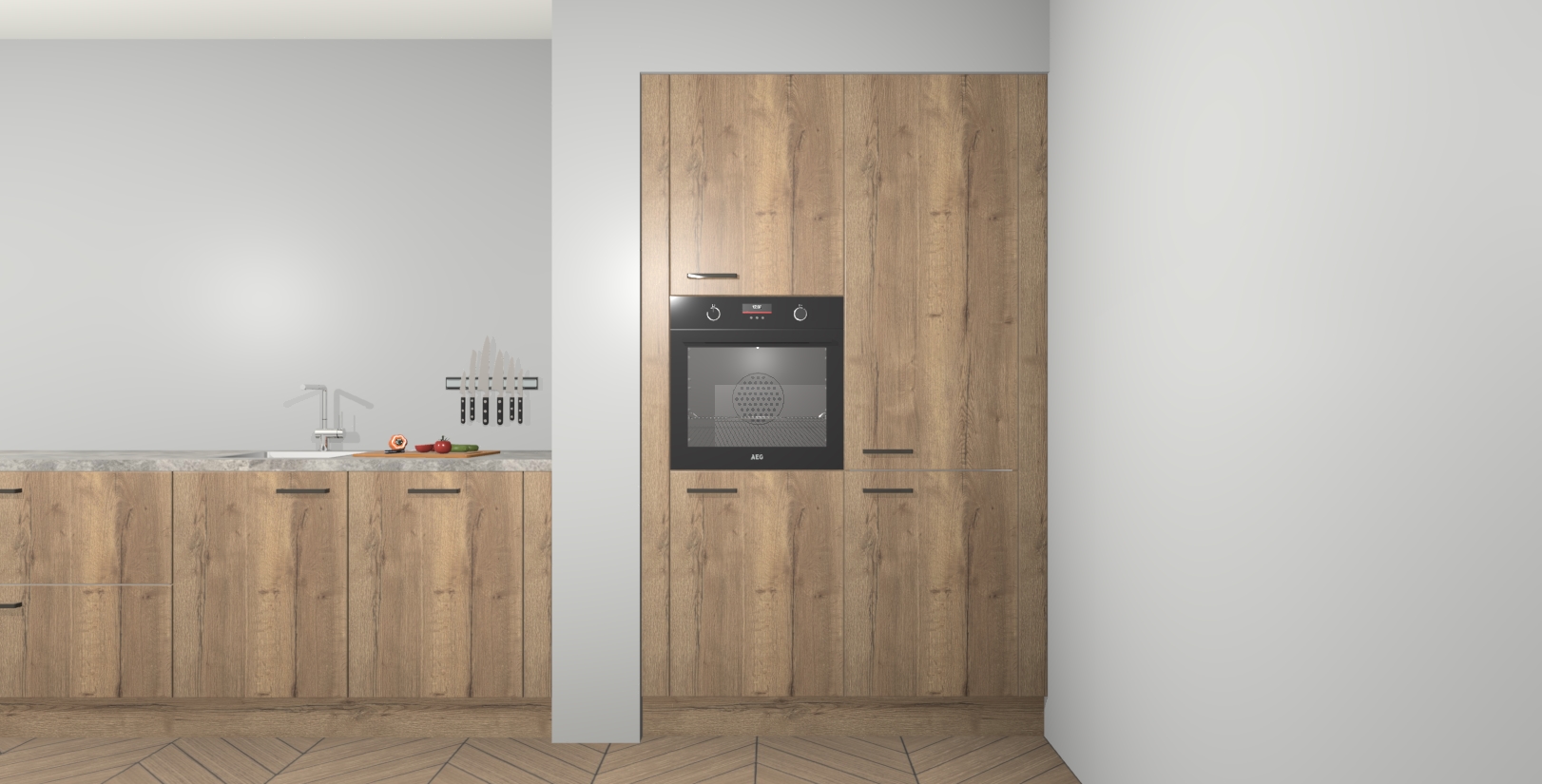 Maak kennis met de Chocolade Eiken keuken Calgary - de perfecte aanvulling voor uw moderne keuken! Ervaar tijdloos design, elegantie en een chique uitstraling met onze handgrepen, soft-close deuren en veel opbergruimte. Dit alles wordt aangeboden tegen een vaste lage prijs voor ongeëvenaarde Duitse keukenkwaliteit!