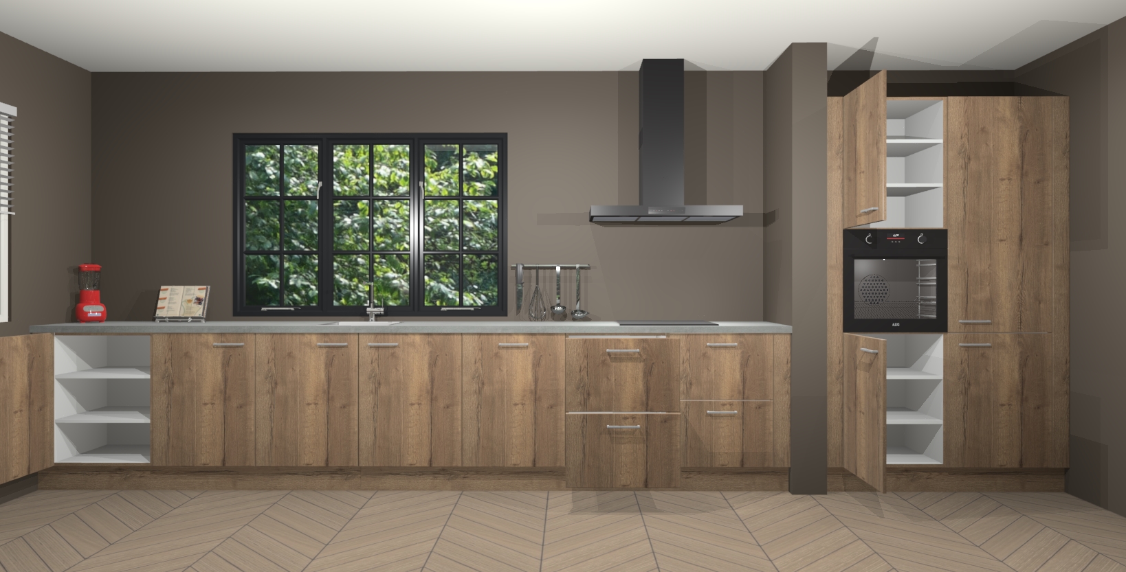 Maak kennis met de Chocolade eiken keuken Elzas - de perfecte aanvulling voor uw moderne keuken! Ervaar tijdloos design, elegantie en een chique uitstraling met onze handgrepen, soft-close deuren en veel opbergruimte. Dit alles wordt aangeboden tegen een vaste lage prijs voor ongeëvenaarde Duitse keukenkwaliteit!