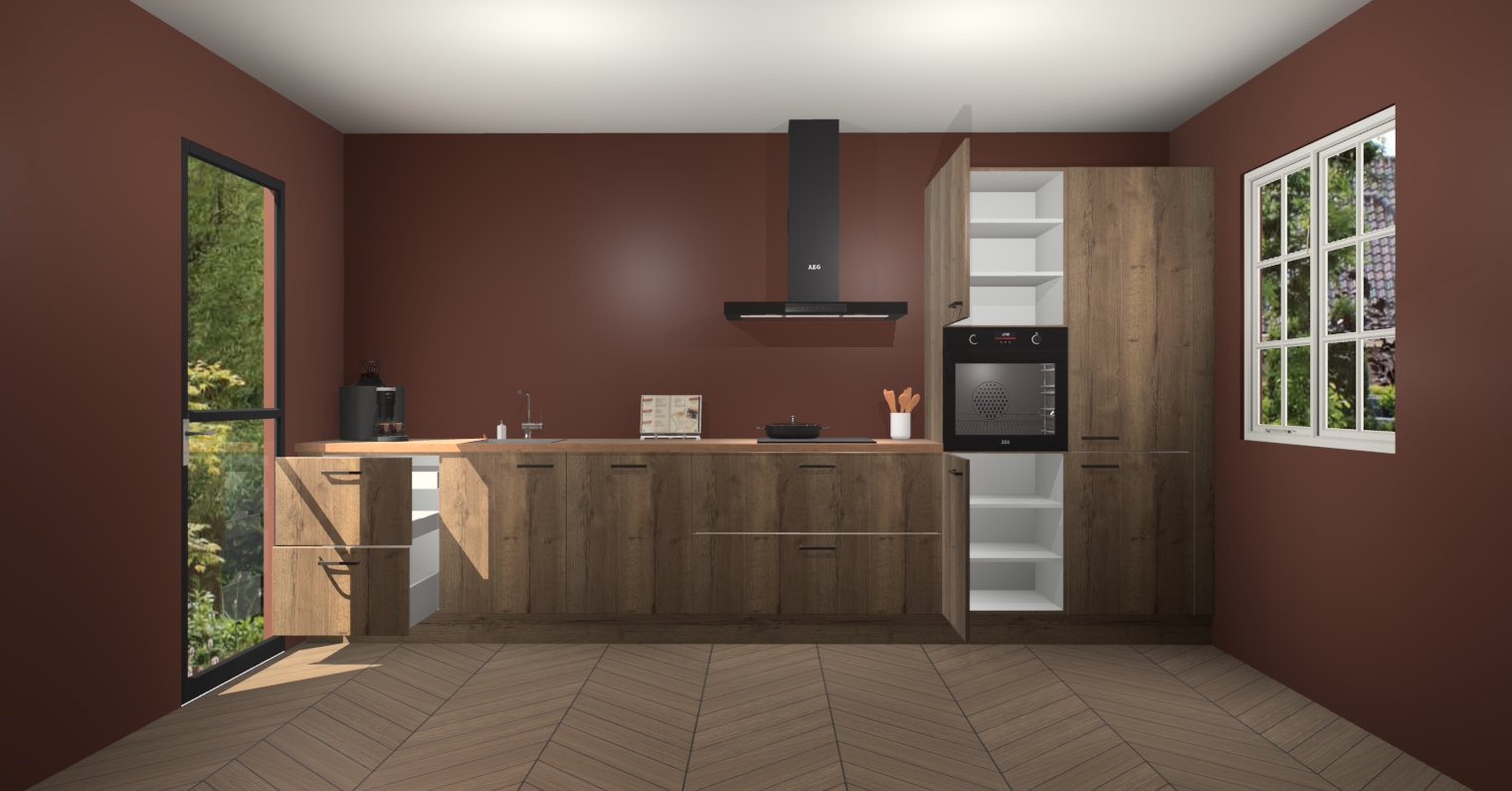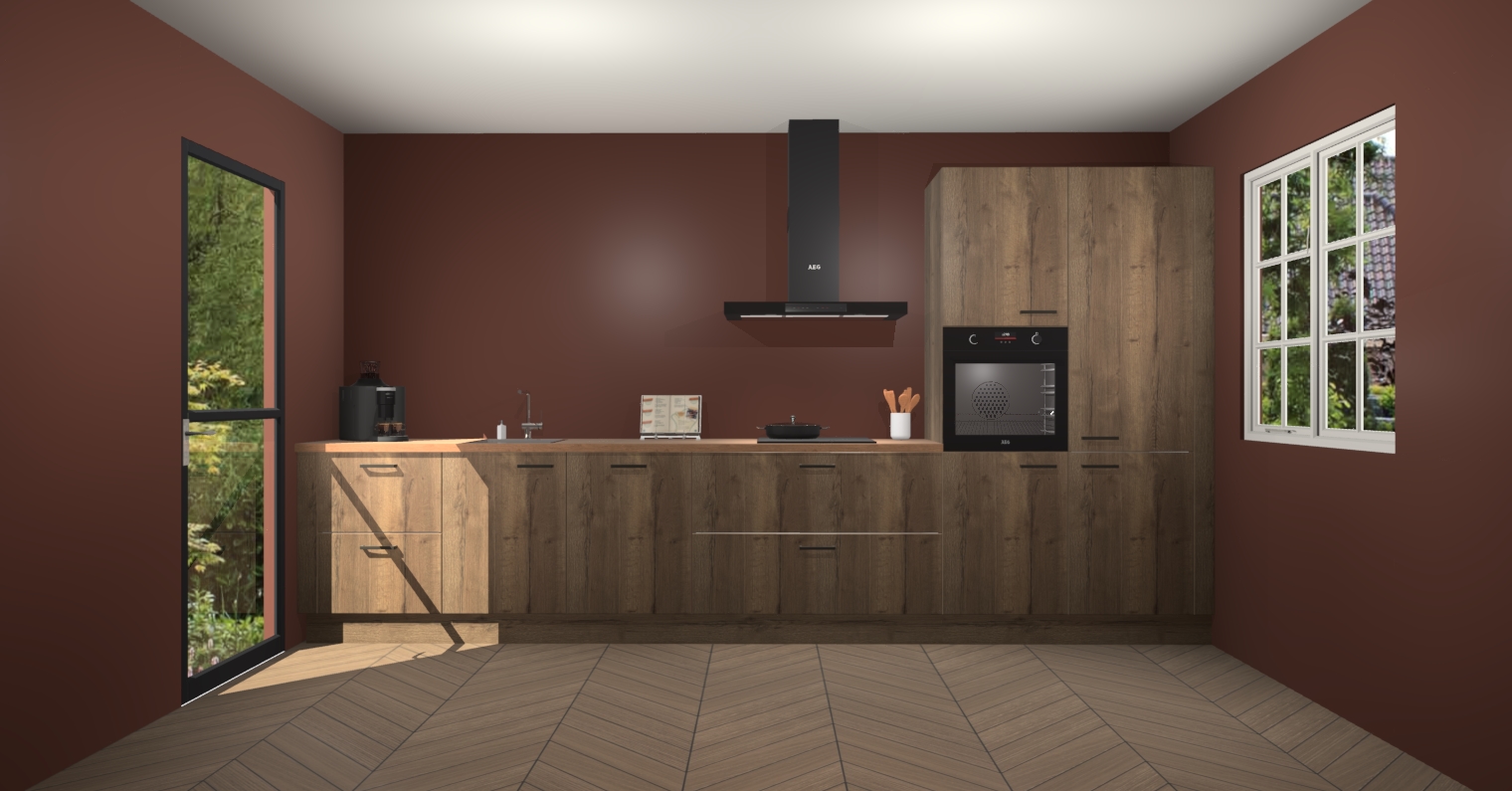 De Chocolade Eiken keuken Leuven is de perfecte mix van modern en tijdloos design. Met zijn prachtige glazen deuren op de bovenkastjes voegt hij echt iets speciaals en unieks toe aan elke keuken. En met vijf ingebouwde apparaten inbegrepen - een oven, inductiekookplaat, afzuigkap, vaatwasser en koelkast - kunt u deze keuken echt helemaal van uzelf maken! U kunt na bestelling ook upgraden naar AEG voor een nog hogere kwaliteitservaring.