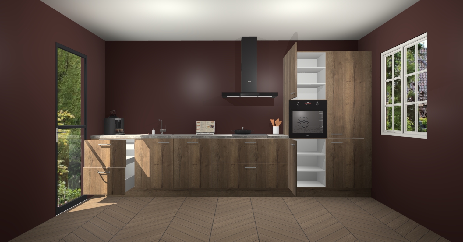 De Chocolade Eiken keuken Leuven is de perfecte mix van modern en tijdloos design. Met zijn prachtige glazen deuren op de bovenkastjes voegt hij echt iets speciaals en unieks toe aan elke keuken. En met vijf ingebouwde apparaten inbegrepen - een oven, inductiekookplaat, afzuigkap, vaatwasser en koelkast - kunt u deze keuken echt helemaal van uzelf maken! U kunt na bestelling ook upgraden naar AEG voor een nog hogere kwaliteitservaring.