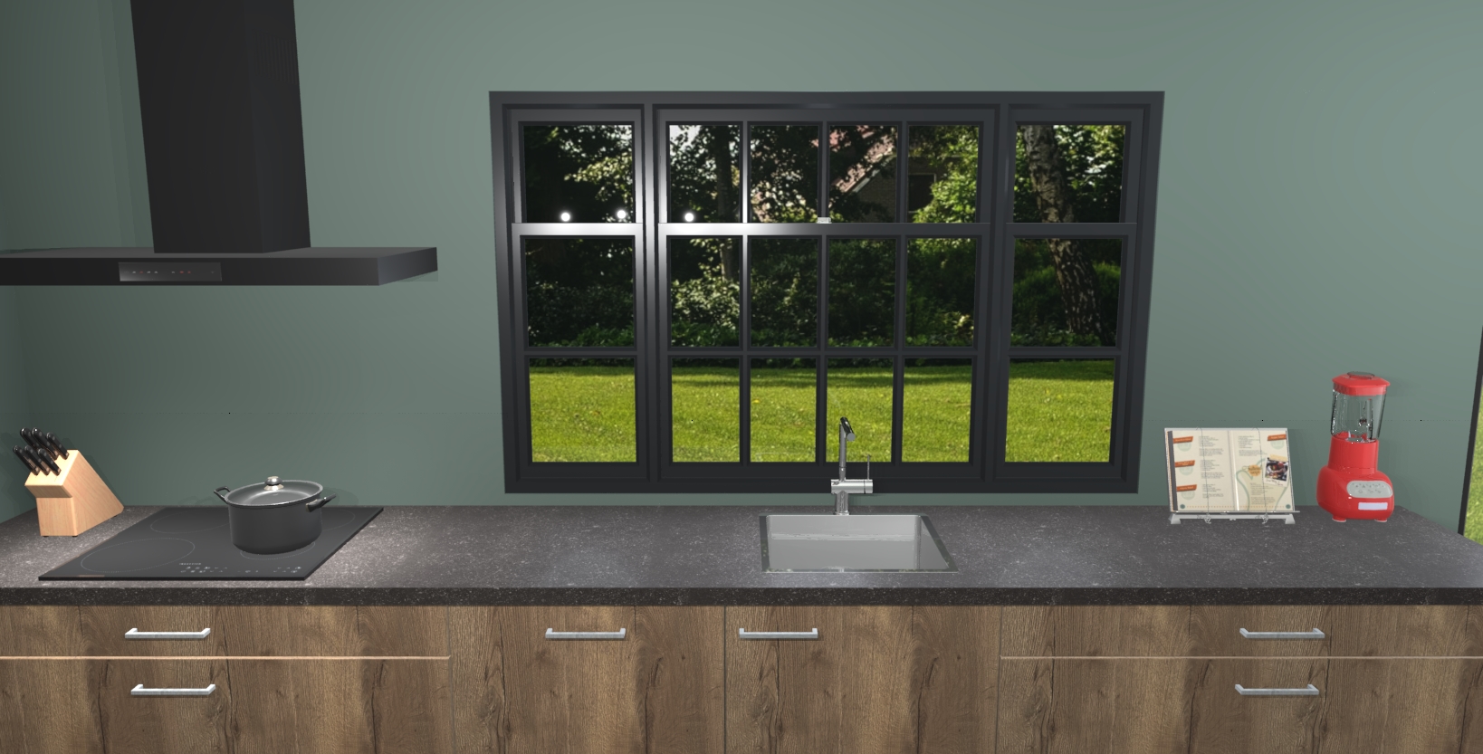 De softclose deuren openen en sluiten is ook heel eenvoudig - geniet van een moeiteloze keukenervaring, zelfs als er kinderen rondlopen. Voor extra gemak bij het plaatsen van uw bestelling bieden we ook een upgrade naar een kookplaat met geïntegreerde afzuiging.