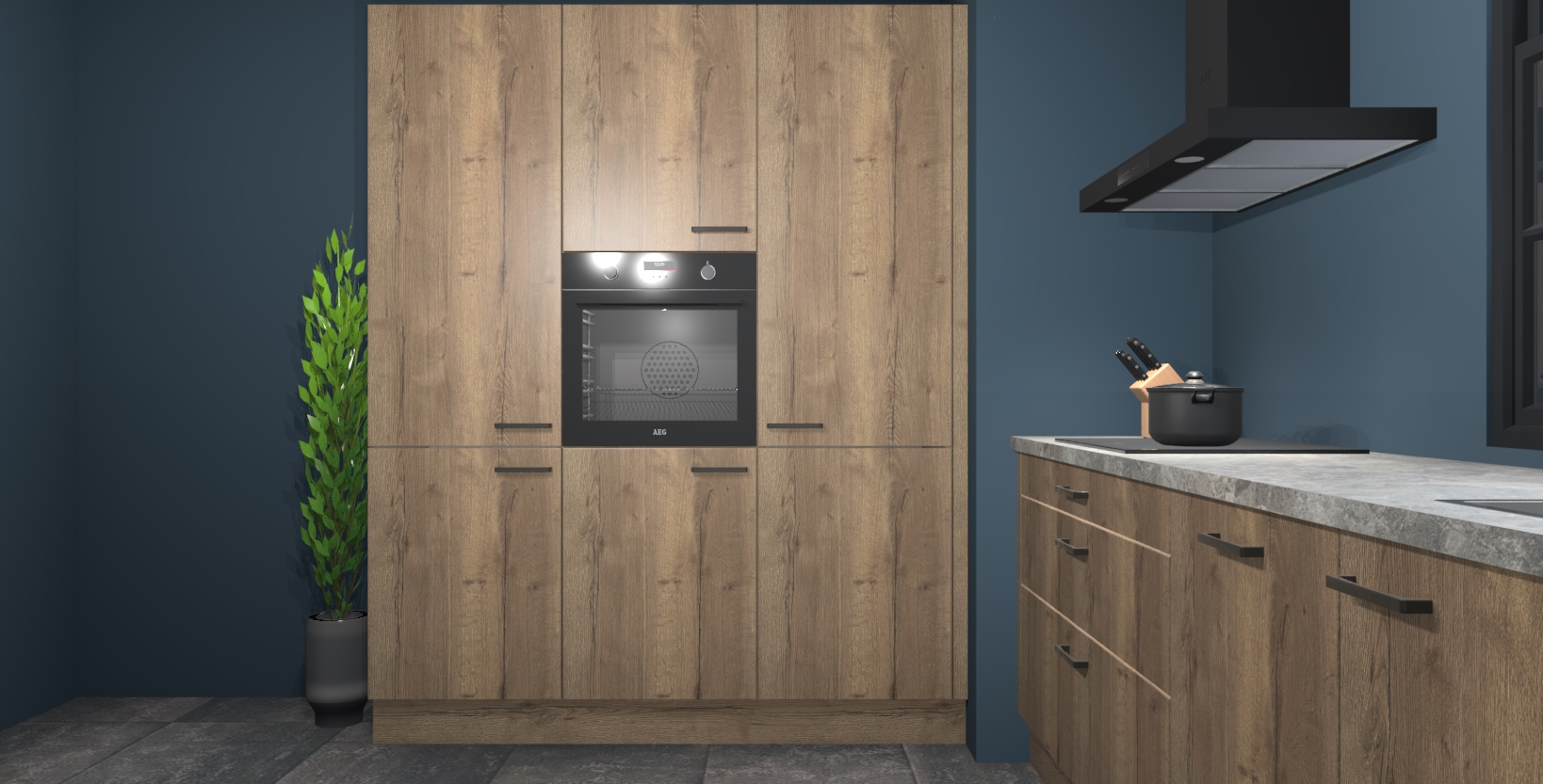 De softclose deuren openen en sluiten is ook heel eenvoudig - geniet van een moeiteloze keukenervaring, zelfs als er kinderen rondlopen. Voor extra gemak bij het plaatsen van uw bestelling bieden we ook een upgrade naar een kookplaat met geïntegreerde afzuiging.