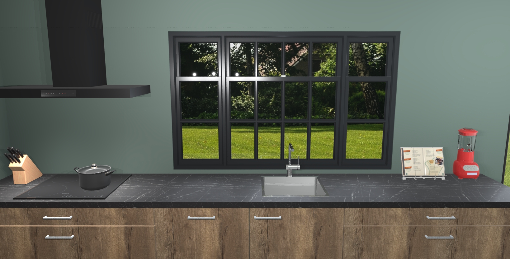 De softclose deuren openen en sluiten is ook heel eenvoudig - geniet van een moeiteloze keukenervaring, zelfs als er kinderen rondlopen. Voor extra gemak bij het plaatsen van uw bestelling bieden we ook een upgrade naar een kookplaat met geïntegreerde afzuiging.