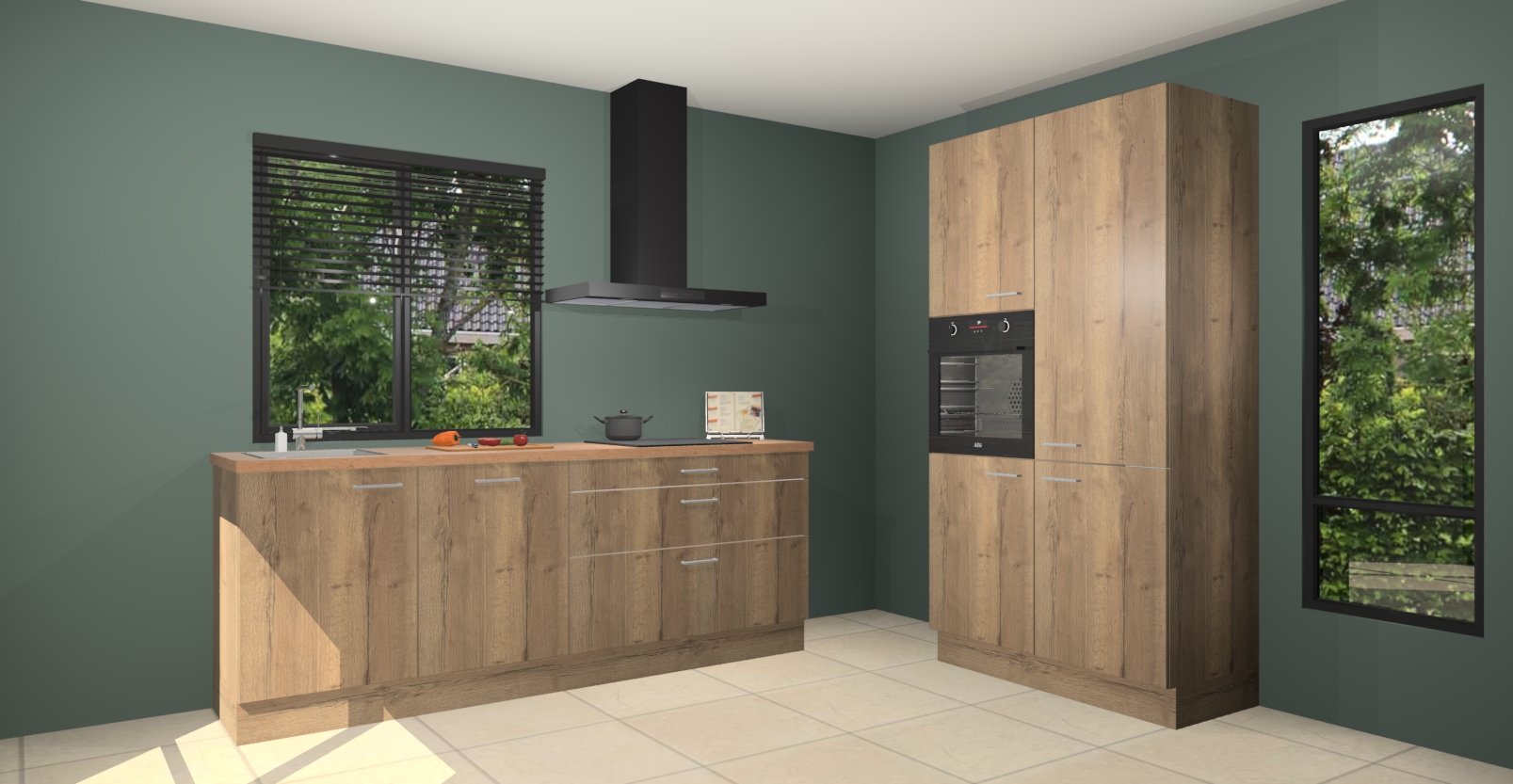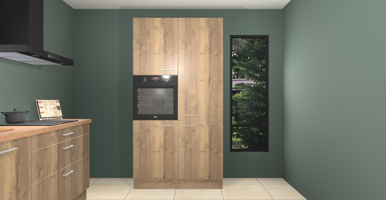 De setting is compleet gemaakt door de vijf inbouwapparaten: wanneer u gaat bestellen kunt u upgraden naar AEG-apparaten als oven, inductieplaat, afzuigkap, vaatwasser en koelkast. Kiest u voor onze Chocolade eiken keuken Monaco, dan weet u zeker dat u te maken heeft met Duitse kwaliteit. Bovendien is er altijd sprake van een lage prijs en profiteren we aantrekkelijk leveringstermijn: die bedraagt slechts 7 weken ! Om het extra makkelijk te maken worden de keukenkasten reeds voorgemonteerd geleverd.