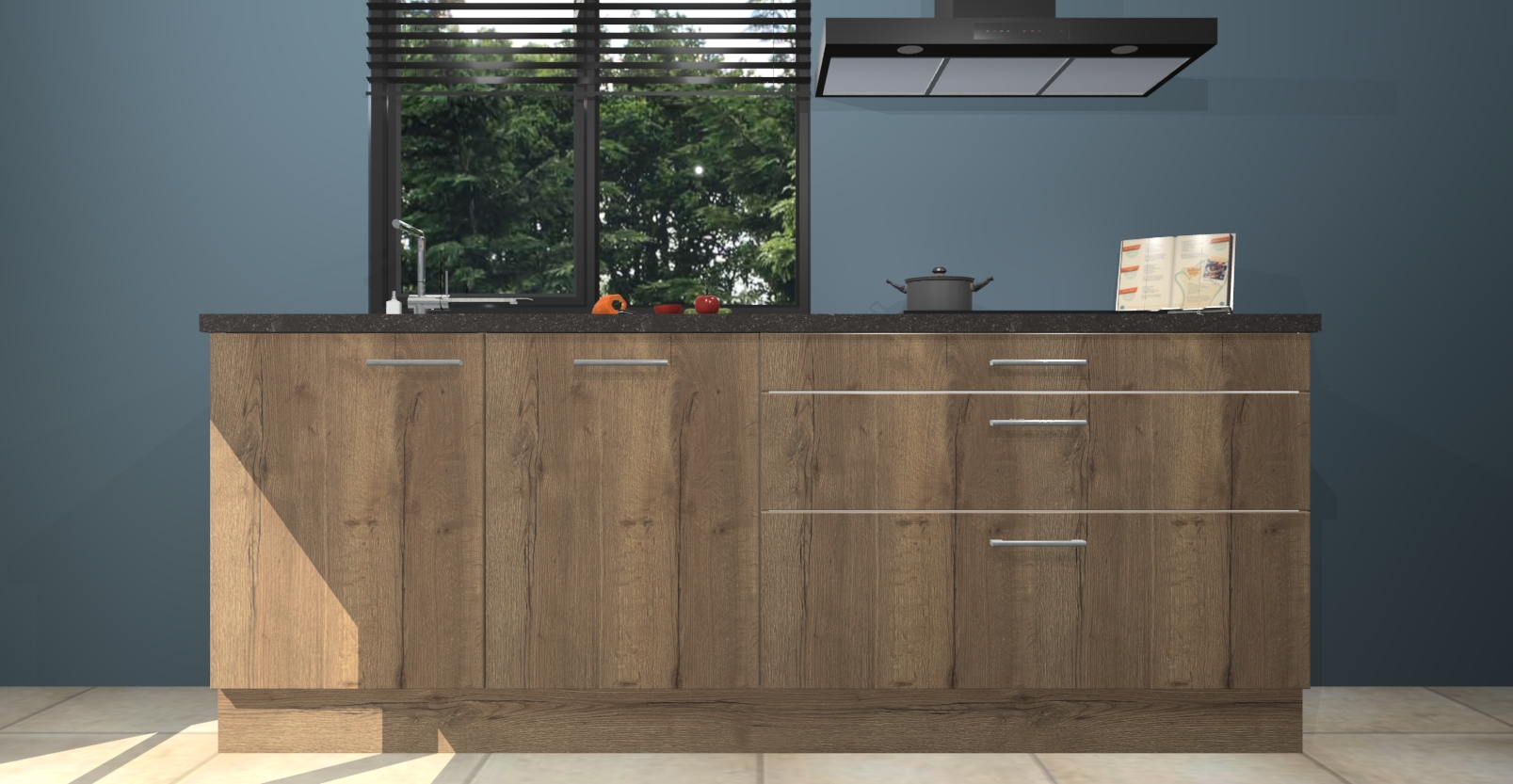 De setting is compleet gemaakt door de vijf inbouwapparaten: wanneer u gaat bestellen kunt u upgraden naar AEG-apparaten als oven, inductieplaat, afzuigkap, vaatwasser en koelkast. Kiest u voor onze Chocolade eiken keuken Monaco, dan weet u zeker dat u te maken heeft met Duitse kwaliteit. Bovendien is er altijd sprake van een lage prijs en profiteren we aantrekkelijk leveringstermijn: die bedraagt slechts 7 weken ! Om het extra makkelijk te maken worden de keukenkasten reeds voorgemonteerd geleverd.