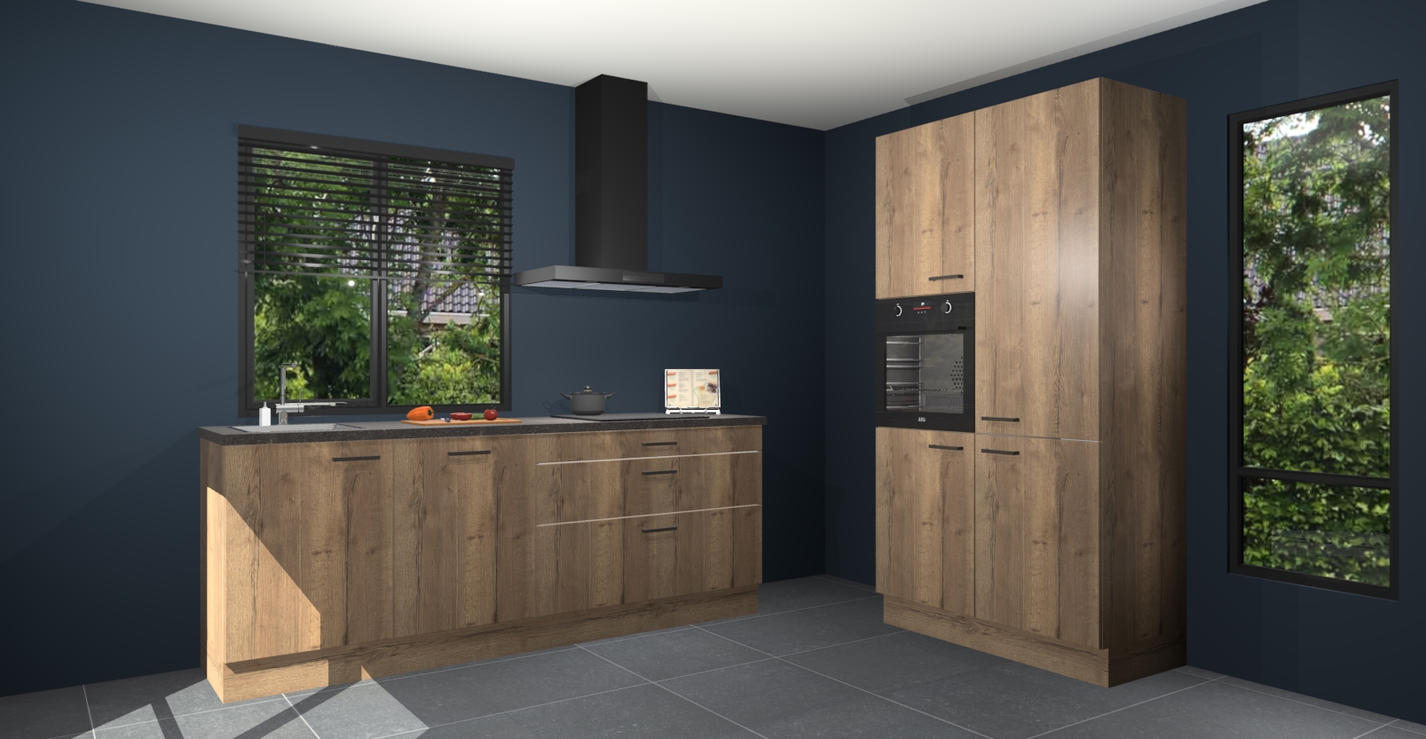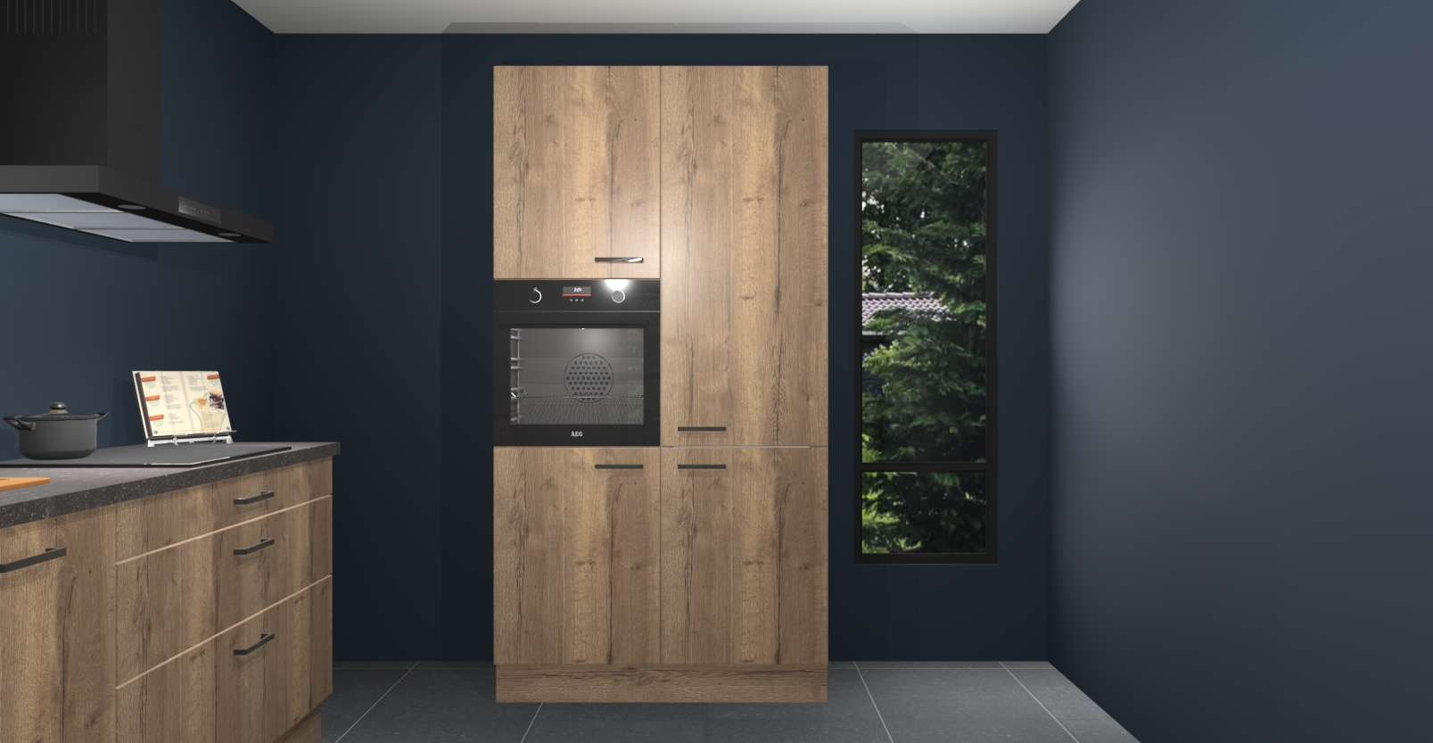 De setting is compleet gemaakt door de vijf inbouwapparaten: wanneer u gaat bestellen kunt u upgraden naar AEG-apparaten als oven, inductieplaat, afzuigkap, vaatwasser en koelkast. Kiest u voor onze Chocolade eiken keuken Monaco, dan weet u zeker dat u te maken heeft met Duitse kwaliteit. Bovendien is er altijd sprake van een lage prijs en profiteren we aantrekkelijk leveringstermijn: die bedraagt slechts 7 weken ! Om het extra makkelijk te maken worden de keukenkasten reeds voorgemonteerd geleverd.