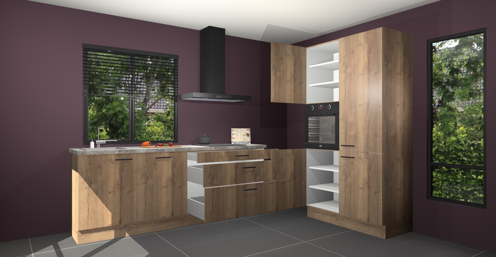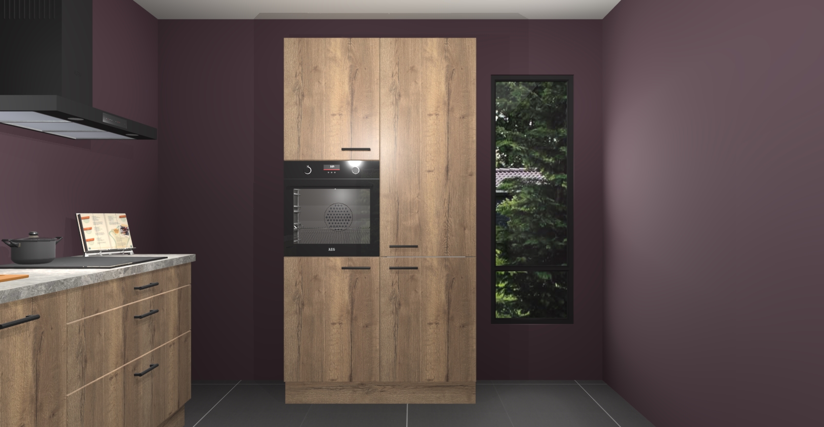 De setting is compleet gemaakt door de vijf inbouwapparaten: wanneer u gaat bestellen kunt u upgraden naar AEG-apparaten als oven, inductieplaat, afzuigkap, vaatwasser en koelkast. Kiest u voor onze Chocolade eiken keuken Monaco, dan weet u zeker dat u te maken heeft met Duitse kwaliteit. Bovendien is er altijd sprake van een lage prijs en profiteren we aantrekkelijk leveringstermijn: die bedraagt slechts 7 weken ! Om het extra makkelijk te maken worden de keukenkasten reeds voorgemonteerd geleverd.