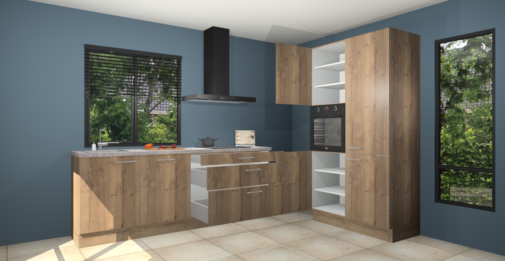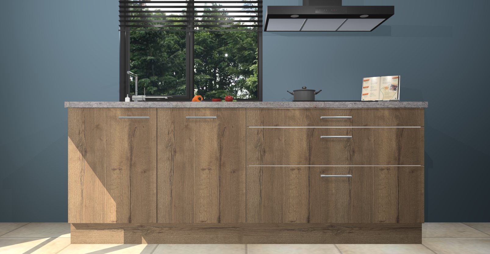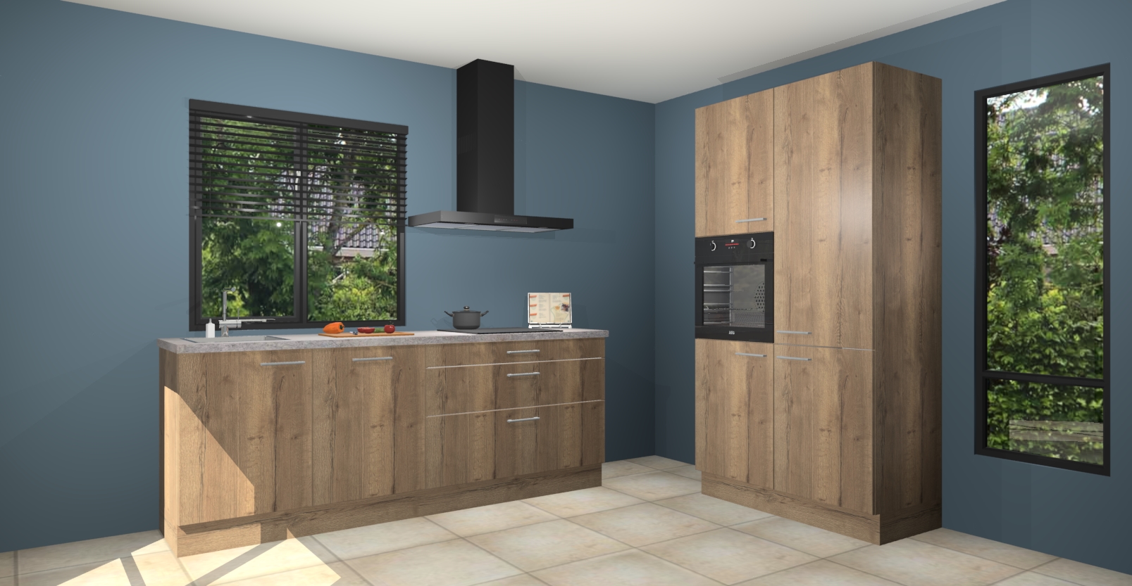 De setting is compleet gemaakt door de vijf inbouwapparaten: wanneer u gaat bestellen kunt u upgraden naar AEG-apparaten als oven, inductieplaat, afzuigkap, vaatwasser en koelkast. Kiest u voor onze Chocolade eiken keuken Monaco, dan weet u zeker dat u te maken heeft met Duitse kwaliteit. Bovendien is er altijd sprake van een lage prijs en profiteren we aantrekkelijk leveringstermijn: die bedraagt slechts 7 weken ! Om het extra makkelijk te maken worden de keukenkasten reeds voorgemonteerd geleverd.