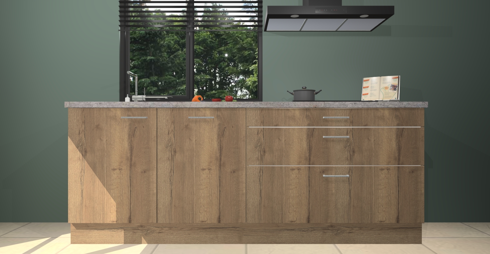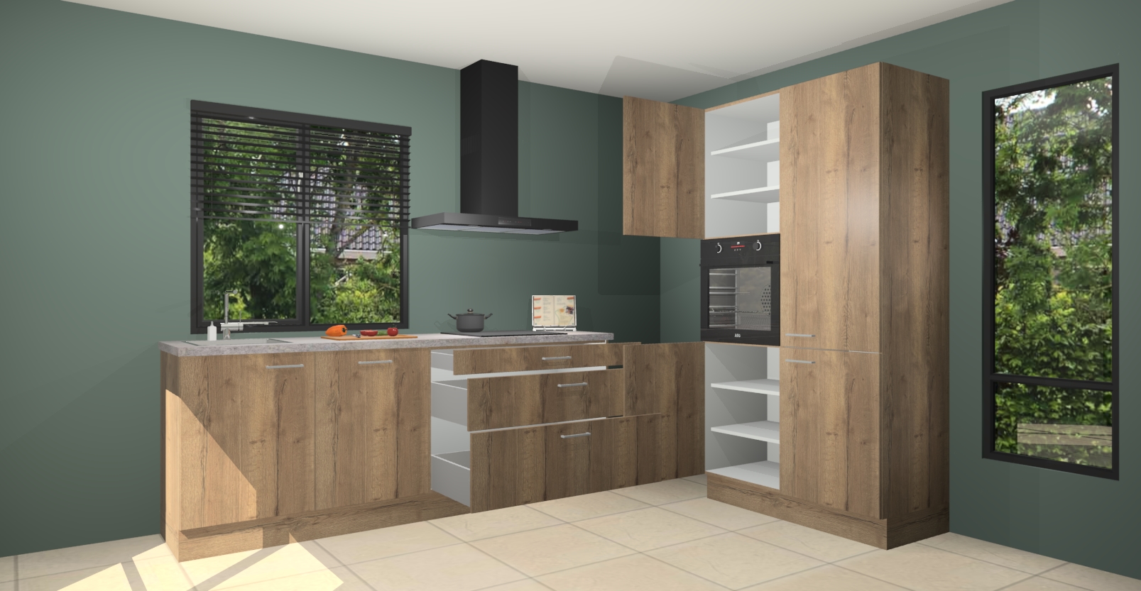De setting is compleet gemaakt door de vijf inbouwapparaten: wanneer u gaat bestellen kunt u upgraden naar AEG-apparaten als oven, inductieplaat, afzuigkap, vaatwasser en koelkast. Kiest u voor onze Chocolade eiken keuken Monaco, dan weet u zeker dat u te maken heeft met Duitse kwaliteit. Bovendien is er altijd sprake van een lage prijs en profiteren we aantrekkelijk leveringstermijn: die bedraagt slechts 7 weken ! Om het extra makkelijk te maken worden de keukenkasten reeds voorgemonteerd geleverd.