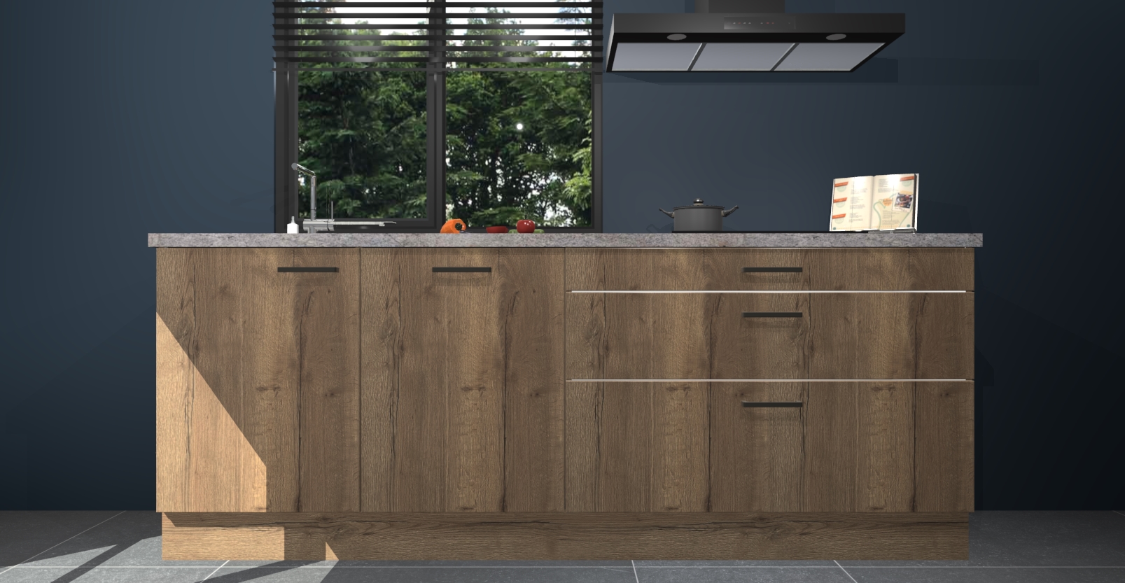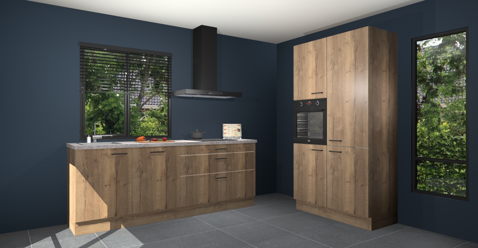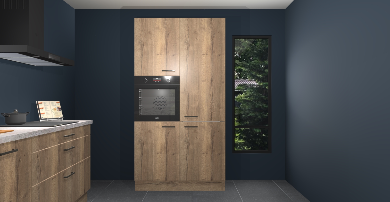 De setting is compleet gemaakt door de vijf inbouwapparaten: wanneer u gaat bestellen kunt u upgraden naar AEG-apparaten als oven, inductieplaat, afzuigkap, vaatwasser en koelkast. Kiest u voor onze Chocolade eiken keuken Monaco, dan weet u zeker dat u te maken heeft met Duitse kwaliteit. Bovendien is er altijd sprake van een lage prijs en profiteren we aantrekkelijk leveringstermijn: die bedraagt slechts 7 weken ! Om het extra makkelijk te maken worden de keukenkasten reeds voorgemonteerd geleverd.