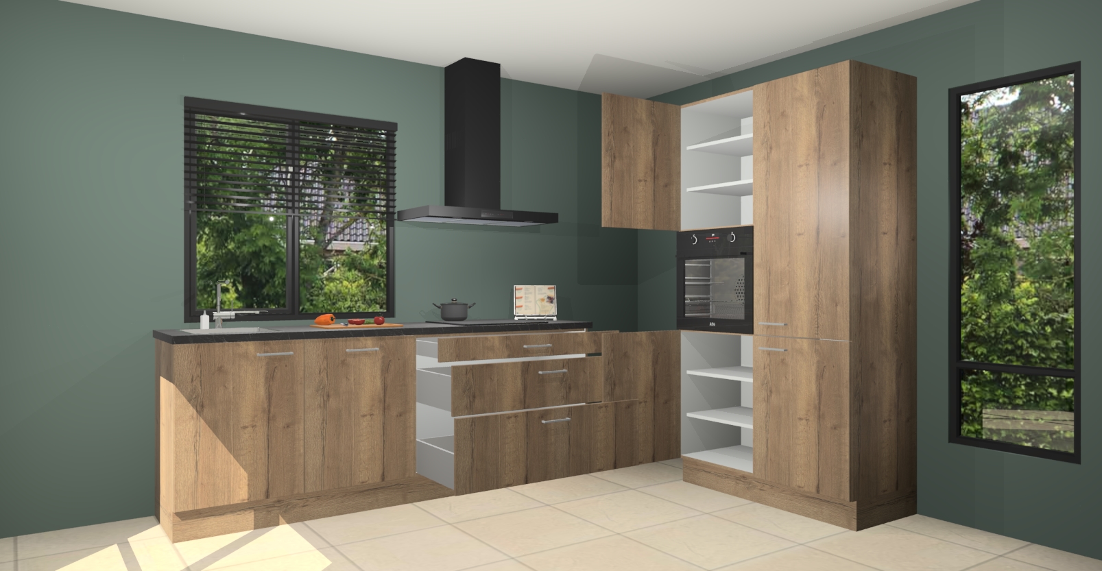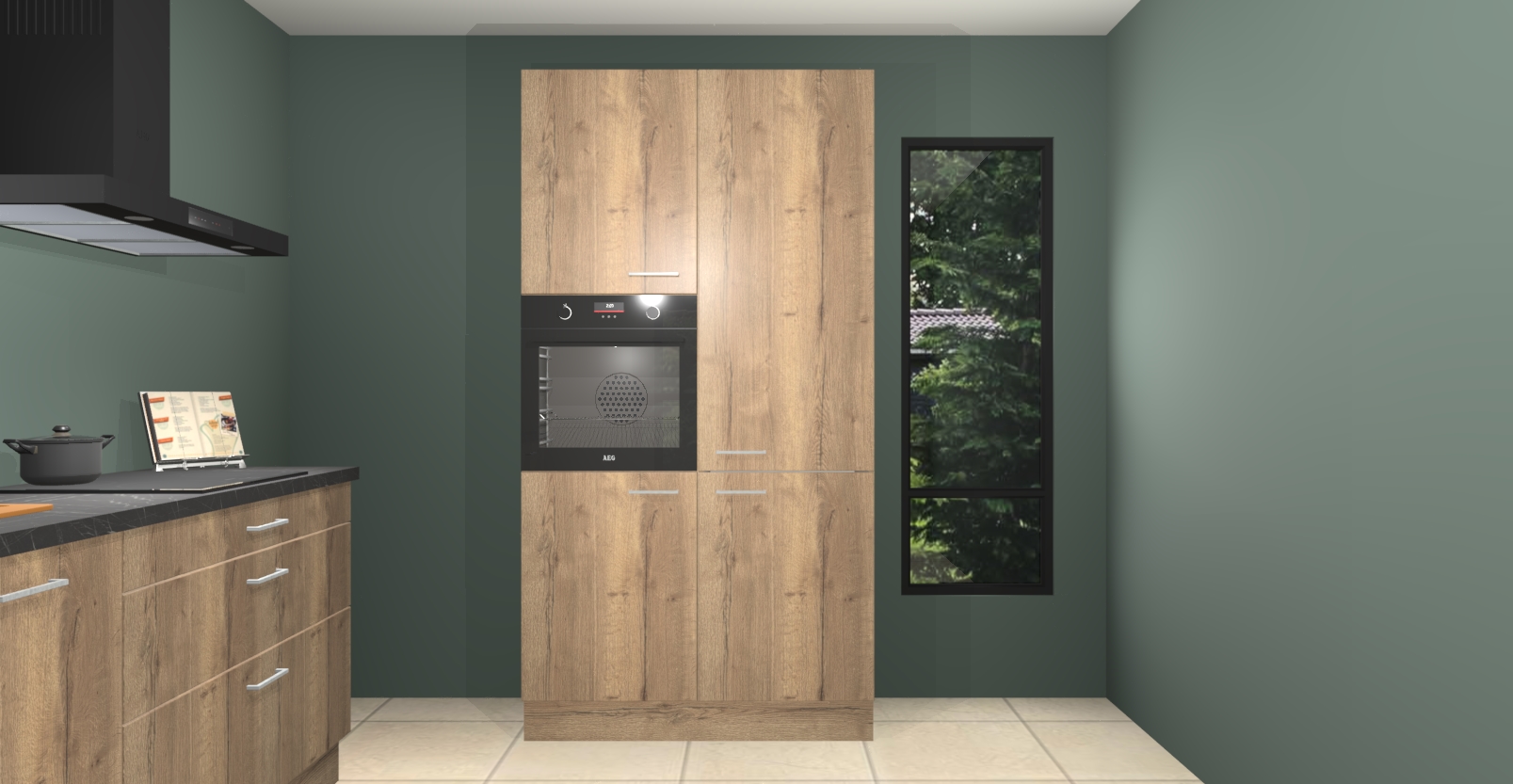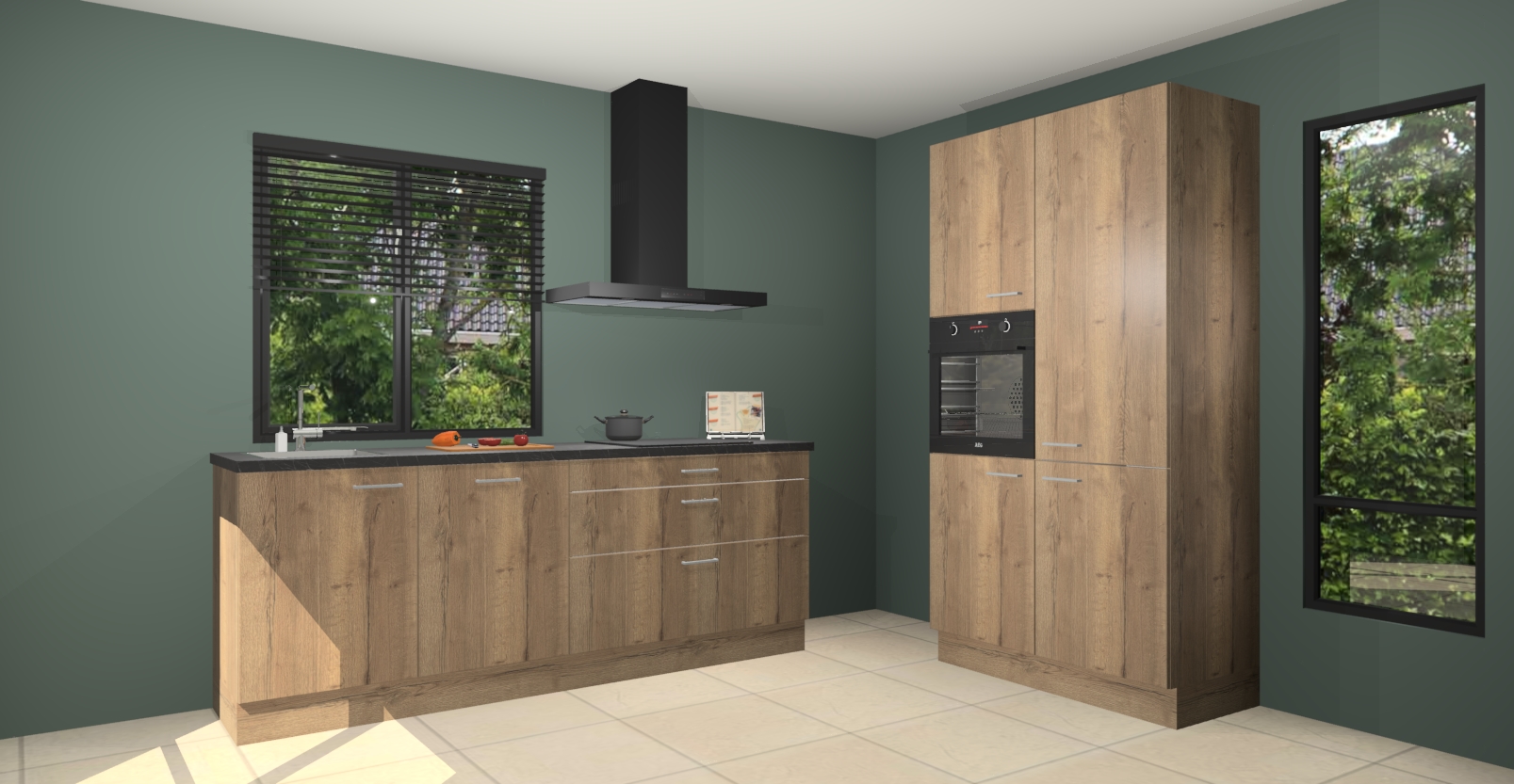 De setting is compleet gemaakt door de vijf inbouwapparaten: wanneer u gaat bestellen kunt u upgraden naar AEG-apparaten als oven, inductieplaat, afzuigkap, vaatwasser en koelkast. Kiest u voor onze Chocolade eiken keuken Monaco, dan weet u zeker dat u te maken heeft met Duitse kwaliteit. Bovendien is er altijd sprake van een lage prijs en profiteren we aantrekkelijk leveringstermijn: die bedraagt slechts 7 weken ! Om het extra makkelijk te maken worden de keukenkasten reeds voorgemonteerd geleverd.