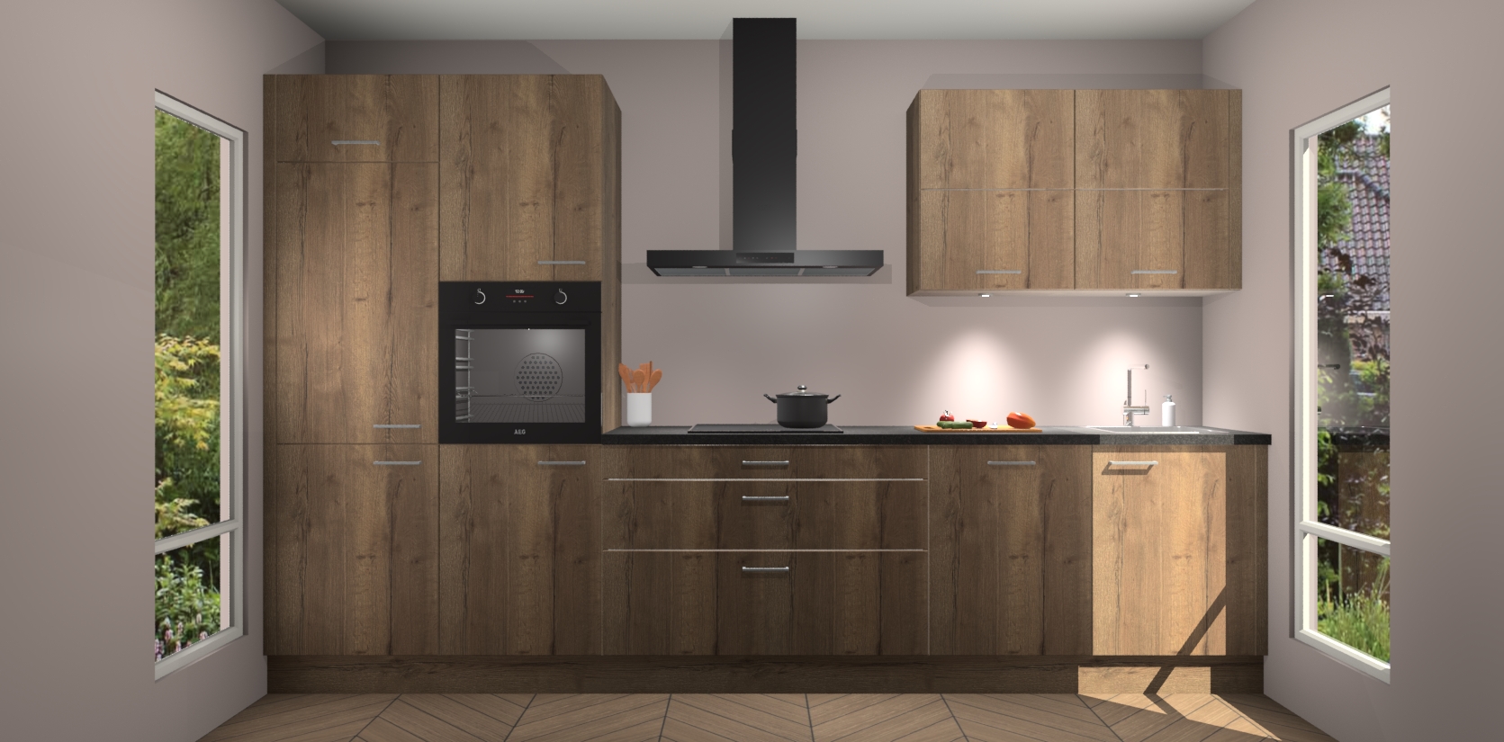 Met een levering binnen 7 weken na bestelling heeft deze keuken bovendien geen last van de ongemakkelijke lange wachttijden die bij andere keukens horen - geen vertragingen meer; gewoon snel resultaat! Krijg meteen die droomkeuken look met de Chocolade Eiken Keuken Parijs!