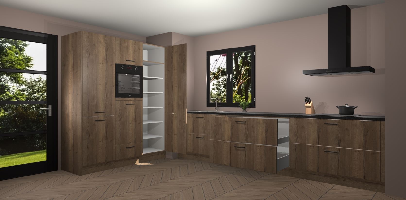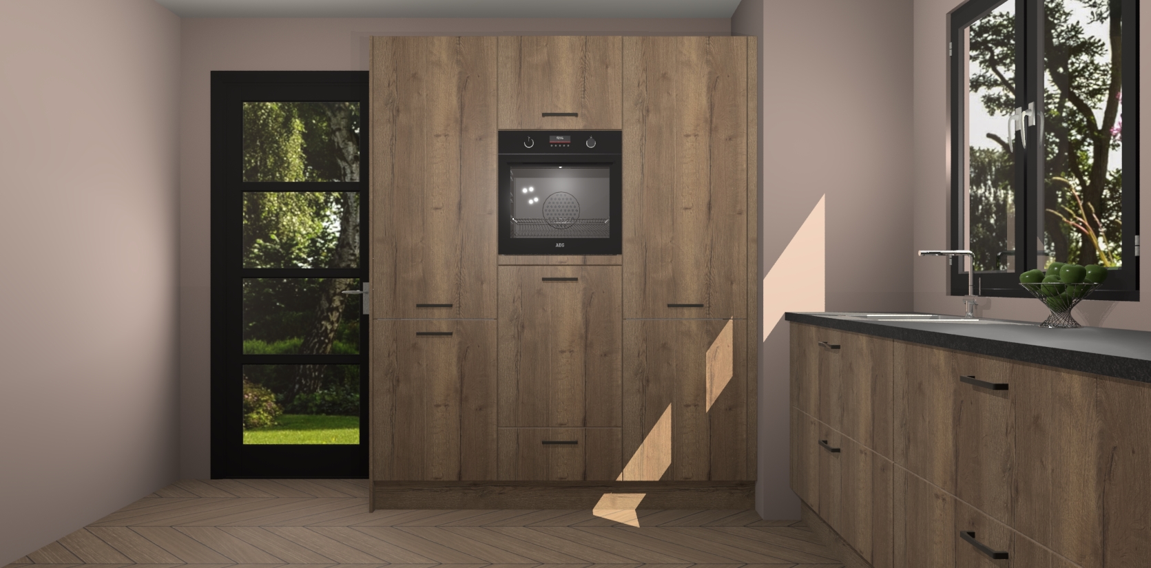 De softclose deuren openen en sluiten is ook heel eenvoudig - geniet van een moeiteloze keukenervaring, zelfs als er kinderen rondlopen. Voor extra gemak bij het plaatsen van uw bestelling bieden we ook een upgrade naar een kookplaat met geïntegreerde afzuiging.