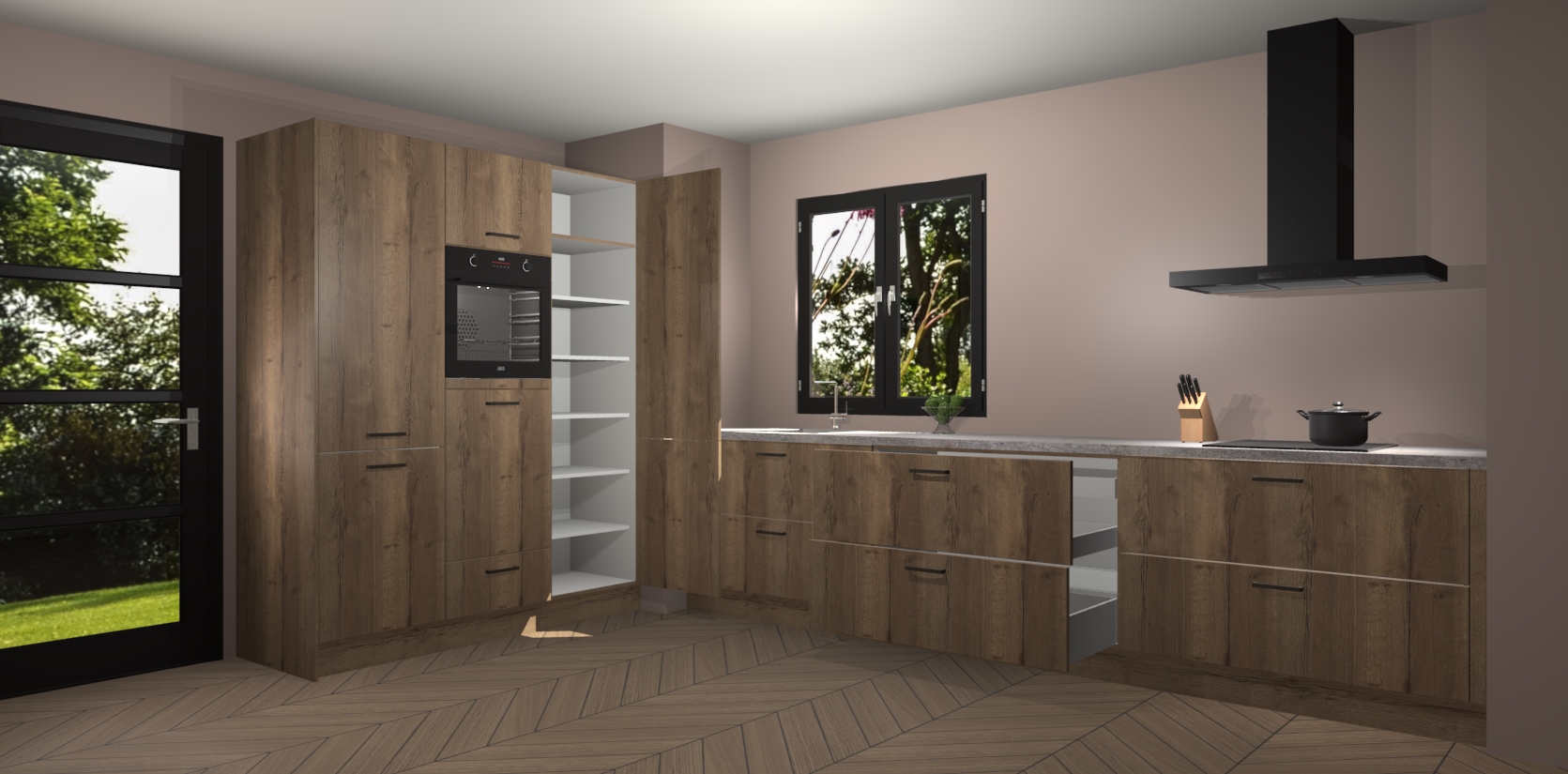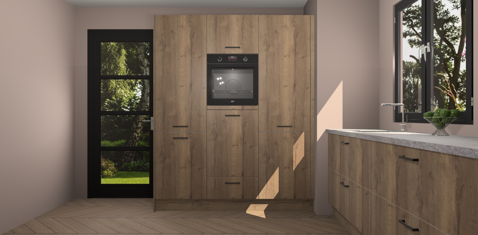 De softclose deuren openen en sluiten is ook heel eenvoudig - geniet van een moeiteloze keukenervaring, zelfs als er kinderen rondlopen. Voor extra gemak bij het plaatsen van uw bestelling bieden we ook een upgrade naar een kookplaat met geïntegreerde afzuiging.