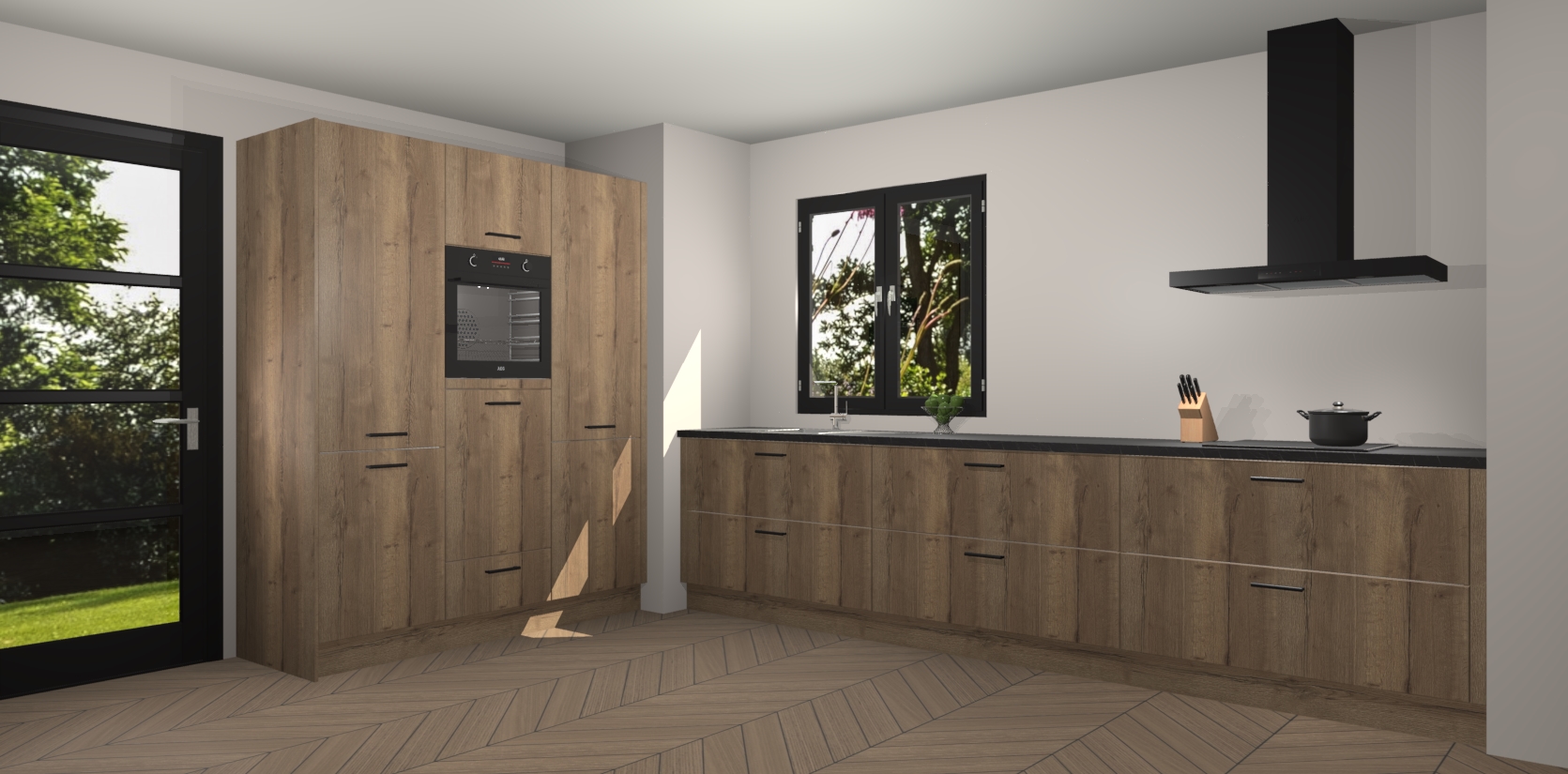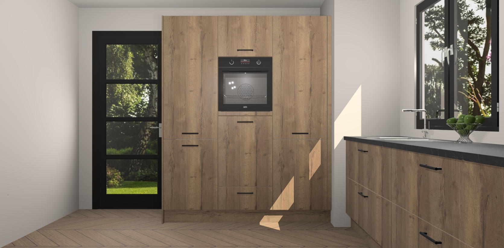 De softclose deuren openen en sluiten is ook heel eenvoudig - geniet van een moeiteloze keukenervaring, zelfs als er kinderen rondlopen. Voor extra gemak bij het plaatsen van uw bestelling bieden we ook een upgrade naar een kookplaat met geïntegreerde afzuiging.