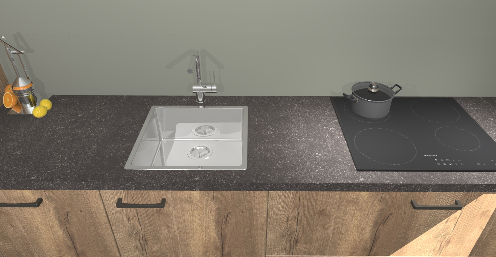 - Uitsparing van kookplaat, spoelbak en kraan dient u zelf te verzorgen.