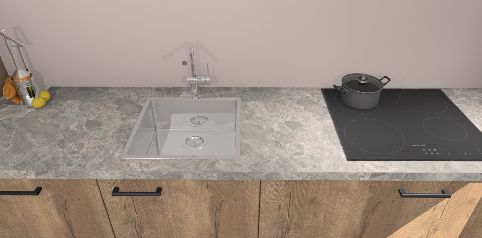 Inclusief plinten, stelpoten en werkblad