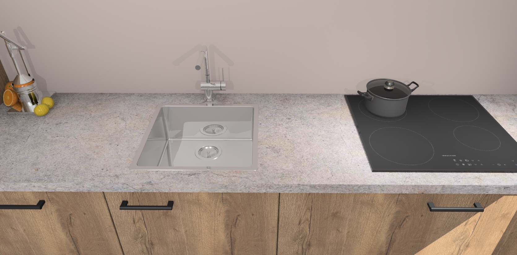 - Uitsparing van kookplaat, spoelbak en kraan dient u zelf te verzorgen.