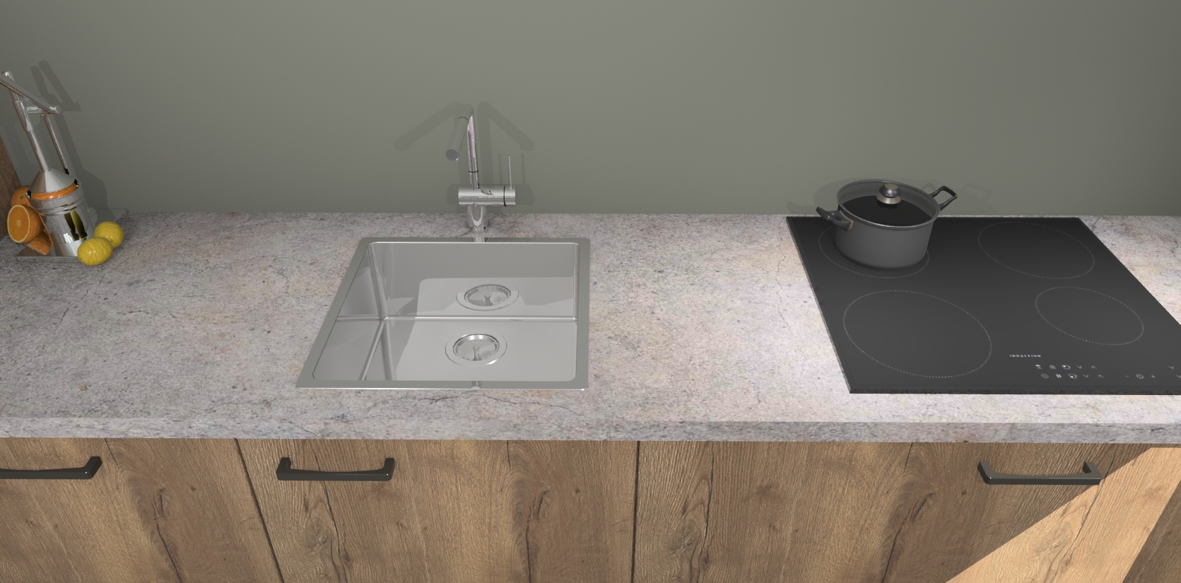 - Uitsparing van kookplaat, spoelbak en kraan dient u zelf te verzorgen.