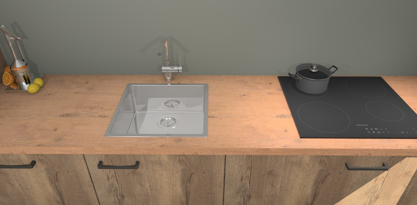 - Uitsparing van kookplaat, spoelbak en kraan dient u zelf te verzorgen.