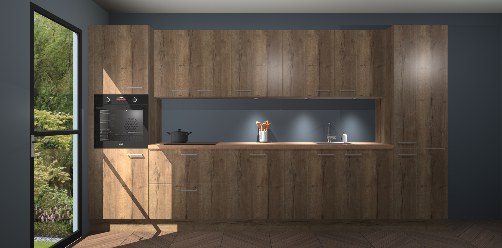 Dit is de perfecte keuken voor wie op zoek is naar een luxueuze stijl zonder zijn portemonnee te legen! Het chique ontwerp van de chocolade eiken keuken Wels voegt dat vleugje verfijning toe aan elk huis. Het gemak van voorgemonteerde kasten bespaart u talloze uren tijd en energie, zodat u veel sneller dan verwacht kunt beginnen te genieten van uw prachtige nieuwe keuken. Bovendien bedraagt de levertijd slechts 7 weken.