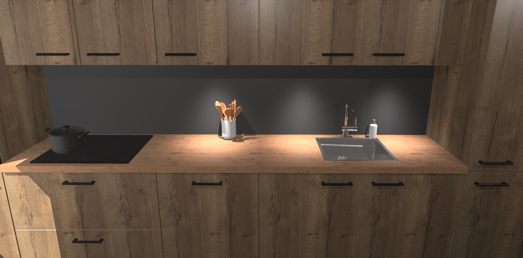 Dit is de perfecte keuken voor wie op zoek is naar een luxueuze stijl zonder zijn portemonnee te legen! Het chique ontwerp van de chocolade eiken keuken Wels voegt dat vleugje verfijning toe aan elk huis. Het gemak van voorgemonteerde kasten bespaart u talloze uren tijd en energie, zodat u veel sneller dan verwacht kunt beginnen te genieten van uw prachtige nieuwe keuken. Bovendien bedraagt de levertijd slechts 7 weken.