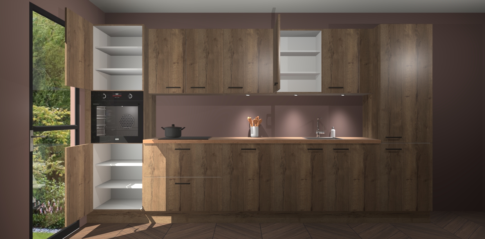 Dit is de perfecte keuken voor wie op zoek is naar een luxueuze stijl zonder zijn portemonnee te legen! Het chique ontwerp van de chocolade eiken keuken Wels voegt dat vleugje verfijning toe aan elk huis. Het gemak van voorgemonteerde kasten bespaart u talloze uren tijd en energie, zodat u veel sneller dan verwacht kunt beginnen te genieten van uw prachtige nieuwe keuken. Bovendien bedraagt de levertijd slechts 7 weken.