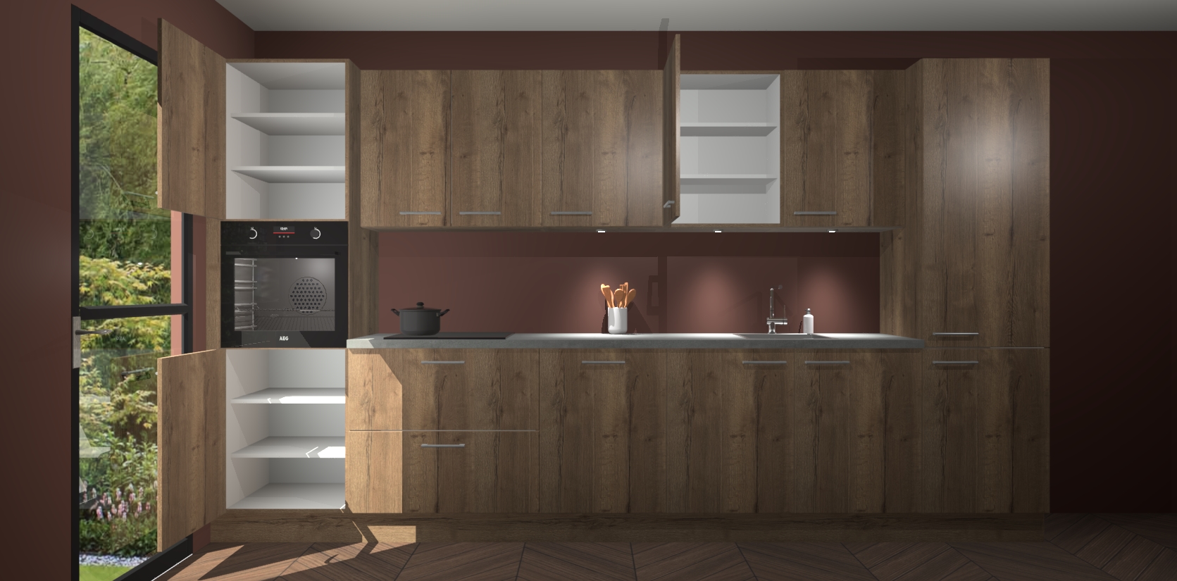 Dit is de perfecte keuken voor wie op zoek is naar een luxueuze stijl zonder zijn portemonnee te legen! Het chique ontwerp van de chocolade eiken keuken Wels voegt dat vleugje verfijning toe aan elk huis. Het gemak van voorgemonteerde kasten bespaart u talloze uren tijd en energie, zodat u veel sneller dan verwacht kunt beginnen te genieten van uw prachtige nieuwe keuken. Bovendien bedraagt de levertijd slechts 7 weken.