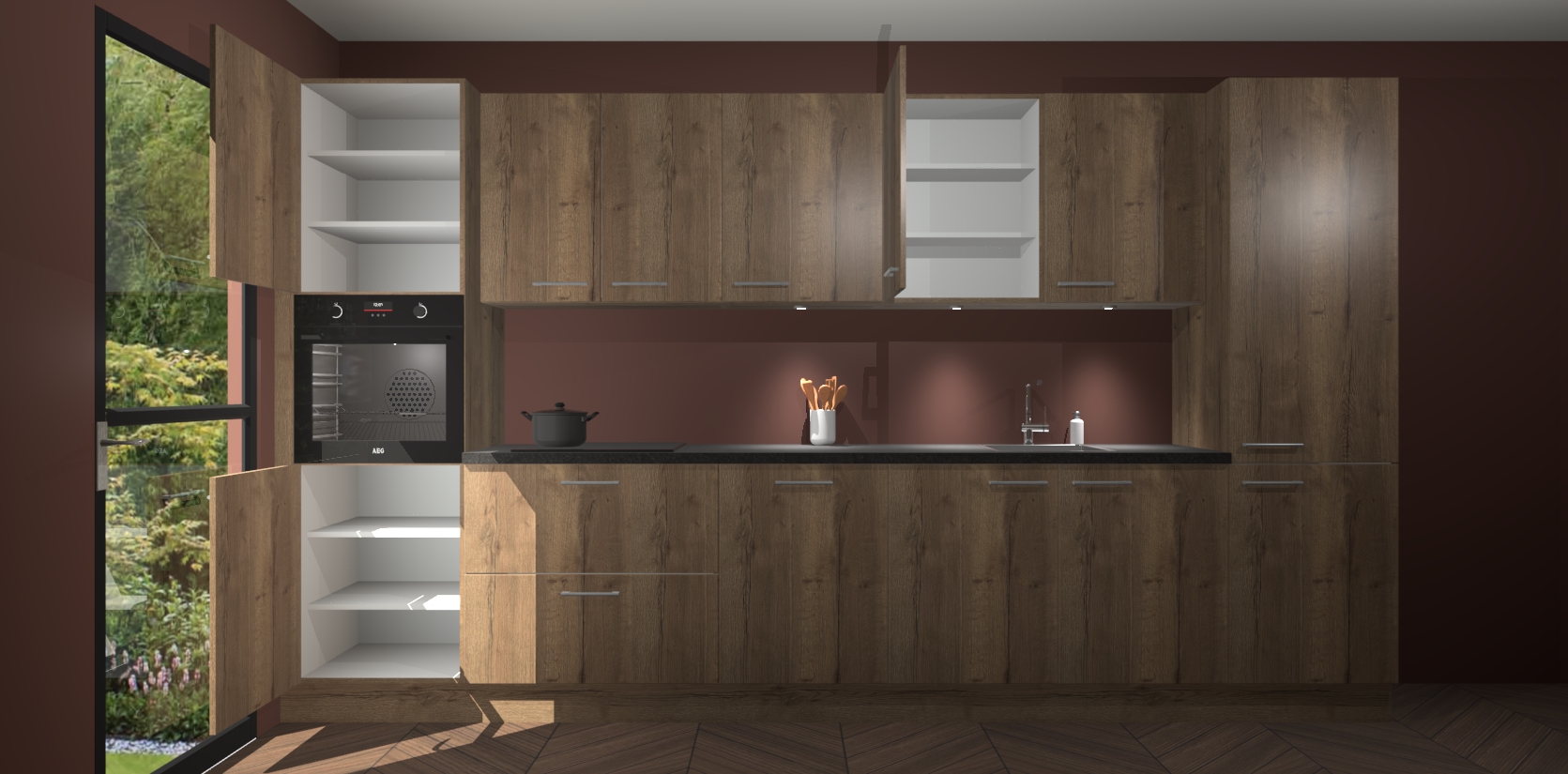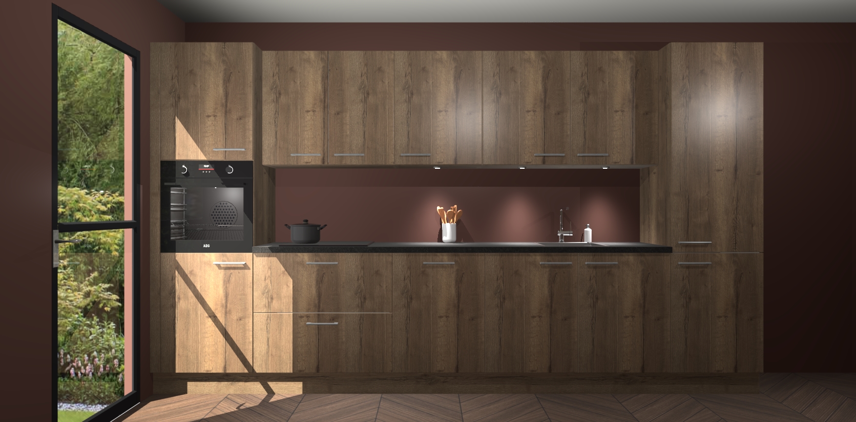 Dit is de perfecte keuken voor wie op zoek is naar een luxueuze stijl zonder zijn portemonnee te legen! Het chique ontwerp van de chocolade eiken keuken Wels voegt dat vleugje verfijning toe aan elk huis. Het gemak van voorgemonteerde kasten bespaart u talloze uren tijd en energie, zodat u veel sneller dan verwacht kunt beginnen te genieten van uw prachtige nieuwe keuken. Bovendien bedraagt de levertijd slechts 7 weken.