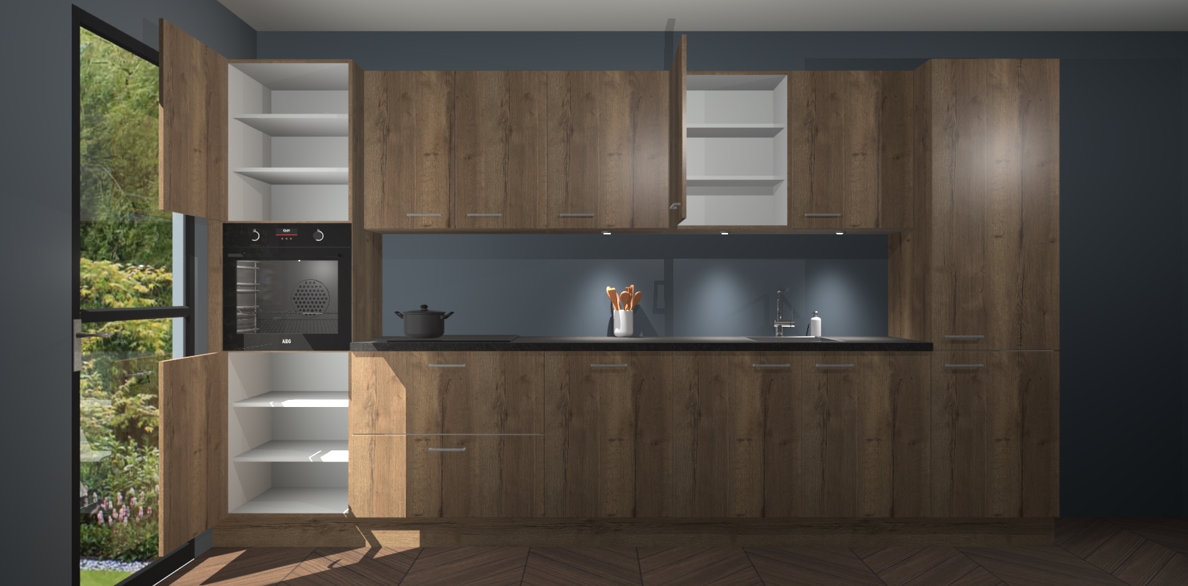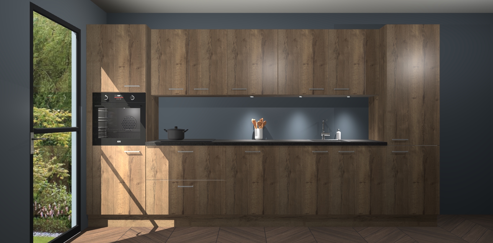 Dit is de perfecte keuken voor wie op zoek is naar een luxueuze stijl zonder zijn portemonnee te legen! Het chique ontwerp van de chocolade eiken keuken Wels voegt dat vleugje verfijning toe aan elk huis. Het gemak van voorgemonteerde kasten bespaart u talloze uren tijd en energie, zodat u veel sneller dan verwacht kunt beginnen te genieten van uw prachtige nieuwe keuken. Bovendien bedraagt de levertijd slechts 7 weken.