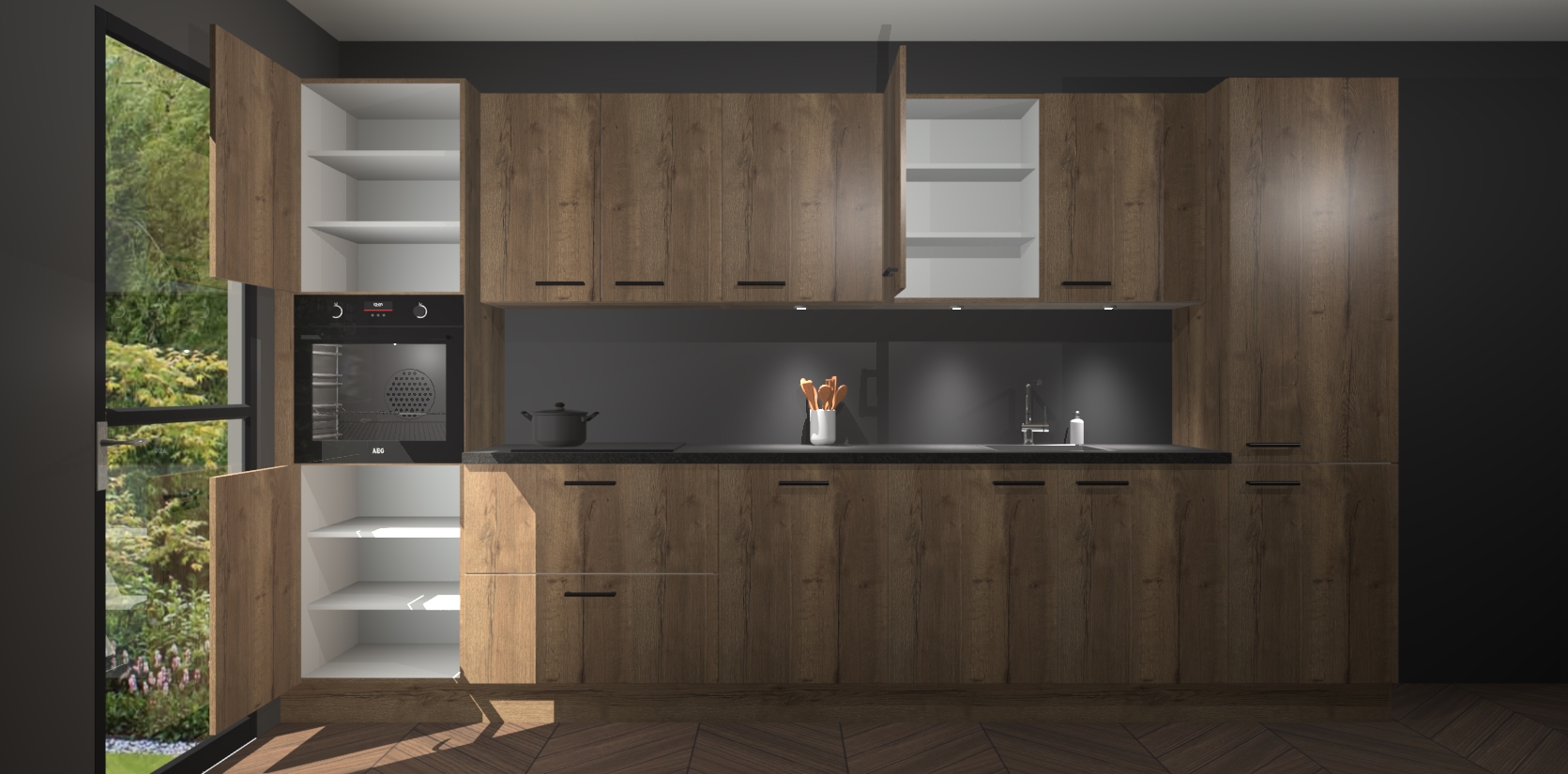 Dit is de perfecte keuken voor wie op zoek is naar een luxueuze stijl zonder zijn portemonnee te legen! Het chique ontwerp van de chocolade eiken keuken Wels voegt dat vleugje verfijning toe aan elk huis. Het gemak van voorgemonteerde kasten bespaart u talloze uren tijd en energie, zodat u veel sneller dan verwacht kunt beginnen te genieten van uw prachtige nieuwe keuken. Bovendien bedraagt de levertijd slechts 7 weken.