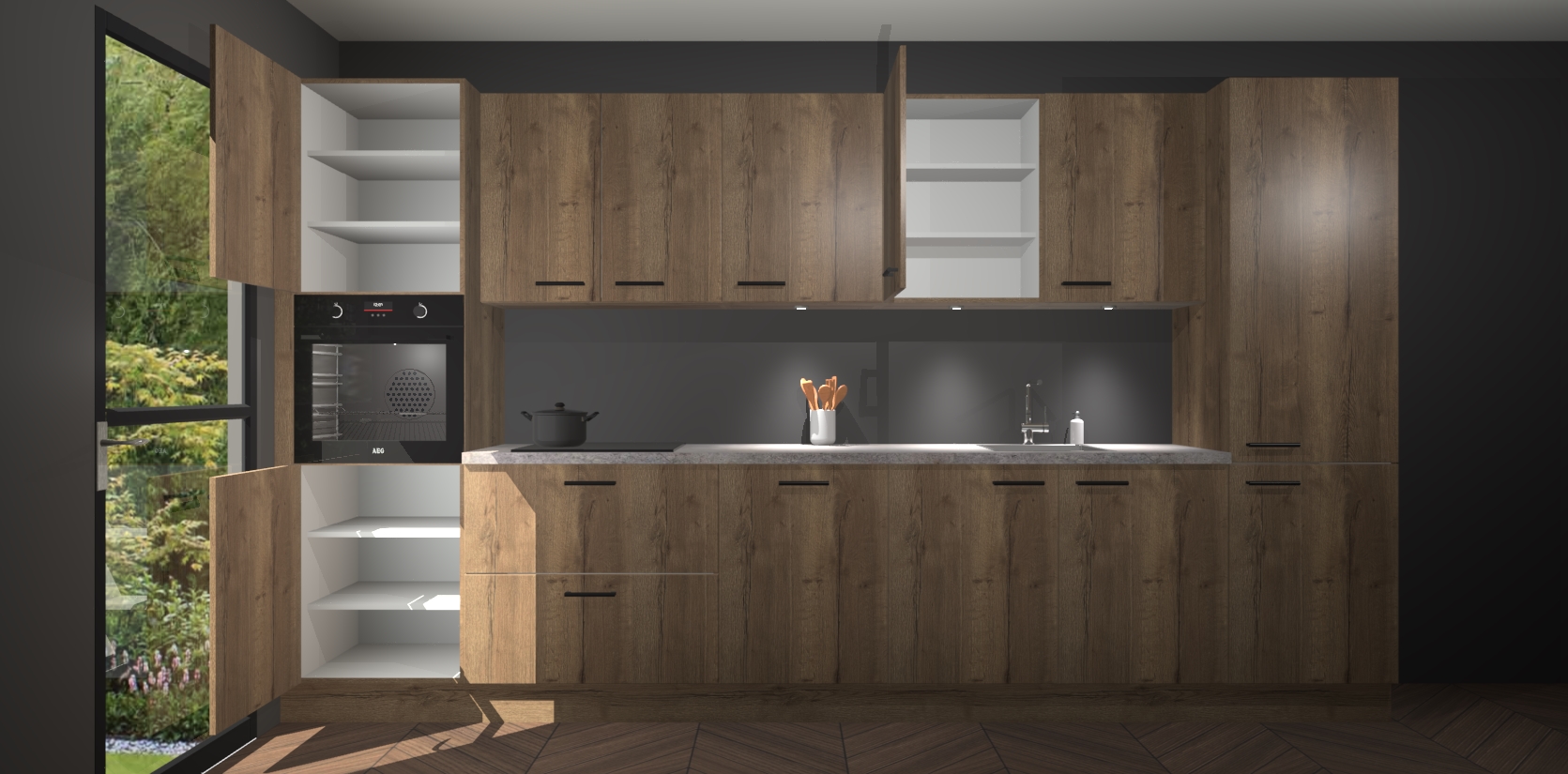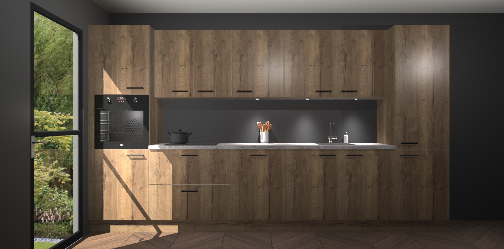 Dit is de perfecte keuken voor wie op zoek is naar een luxueuze stijl zonder zijn portemonnee te legen! Het chique ontwerp van de chocolade eiken keuken Wels voegt dat vleugje verfijning toe aan elk huis. Het gemak van voorgemonteerde kasten bespaart u talloze uren tijd en energie, zodat u veel sneller dan verwacht kunt beginnen te genieten van uw prachtige nieuwe keuken. Bovendien bedraagt de levertijd slechts 7 weken.
