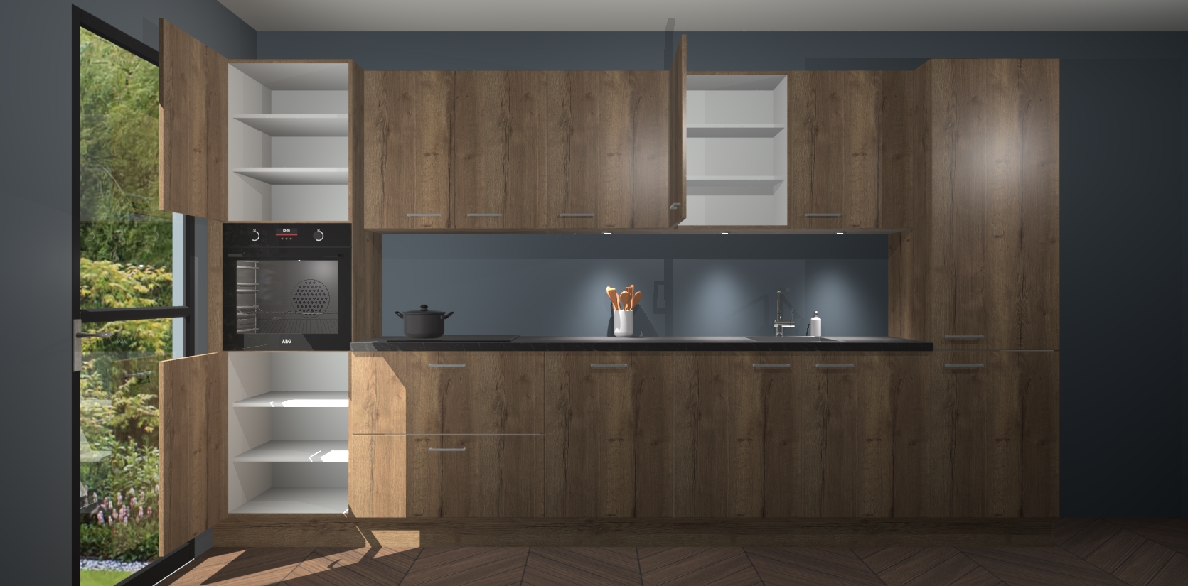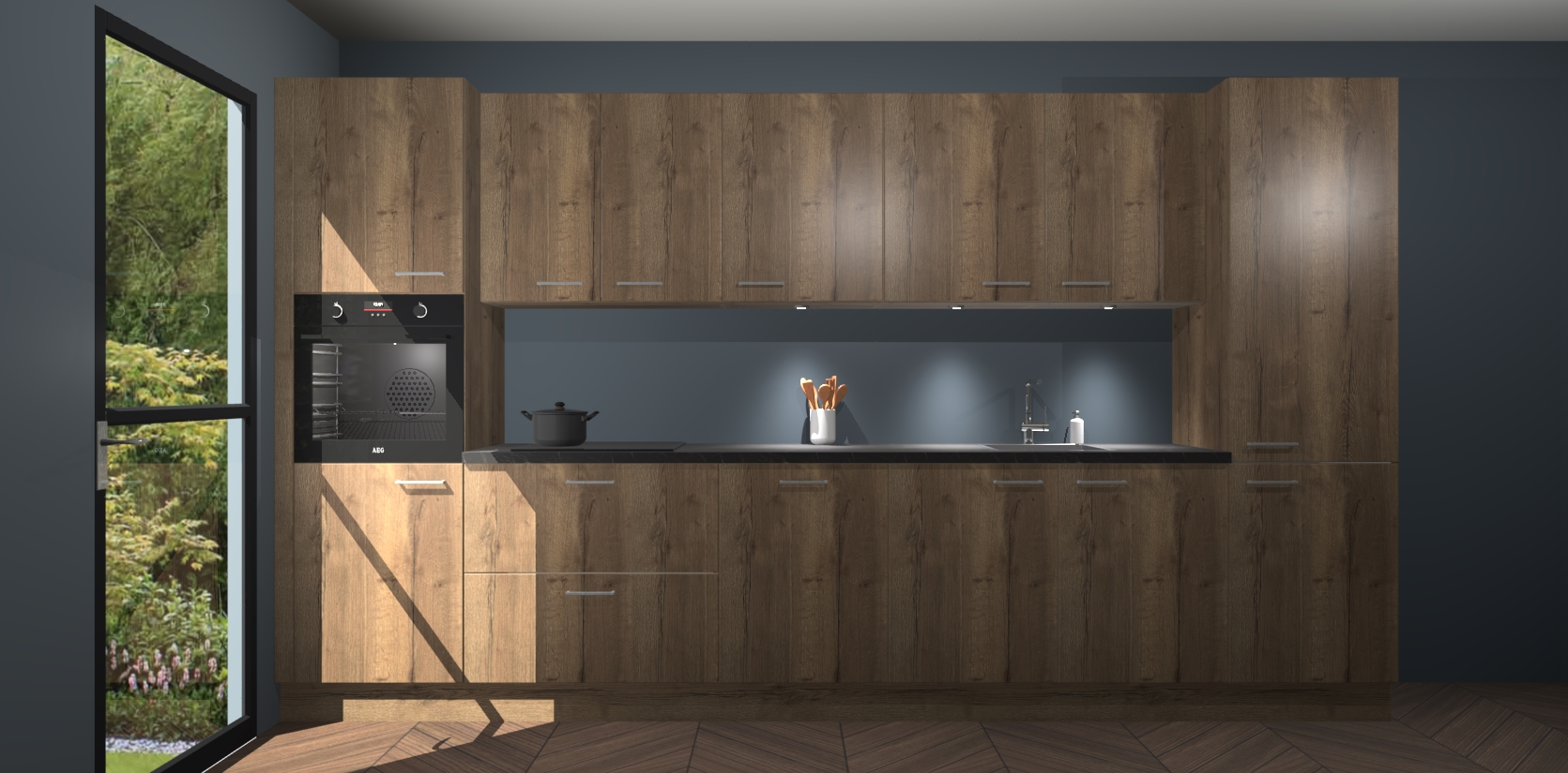 Dit is de perfecte keuken voor wie op zoek is naar een luxueuze stijl zonder zijn portemonnee te legen! Het chique ontwerp van de chocolade eiken keuken Wels voegt dat vleugje verfijning toe aan elk huis. Het gemak van voorgemonteerde kasten bespaart u talloze uren tijd en energie, zodat u veel sneller dan verwacht kunt beginnen te genieten van uw prachtige nieuwe keuken. Bovendien bedraagt de levertijd slechts 7 weken.