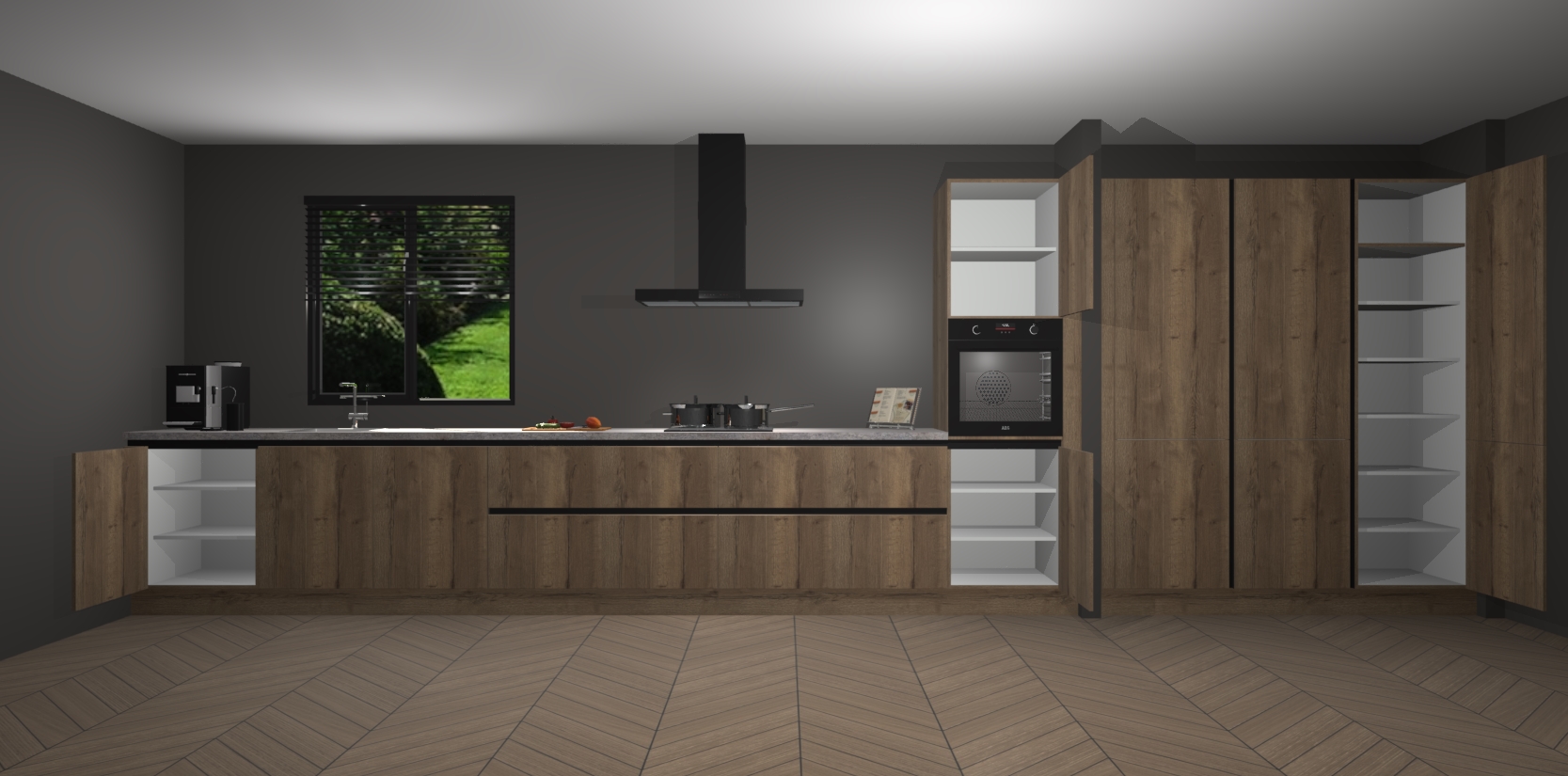 Een stijlvolle en praktische keuken als deze mag gezien worden. Dankzij de prachtige matte afwerking wordt de keuken gemakkelijk het middelpunt van uw huis - hij ziet er geweldig uit onder allerlei lichtomstandigheden, van dag tot nacht!