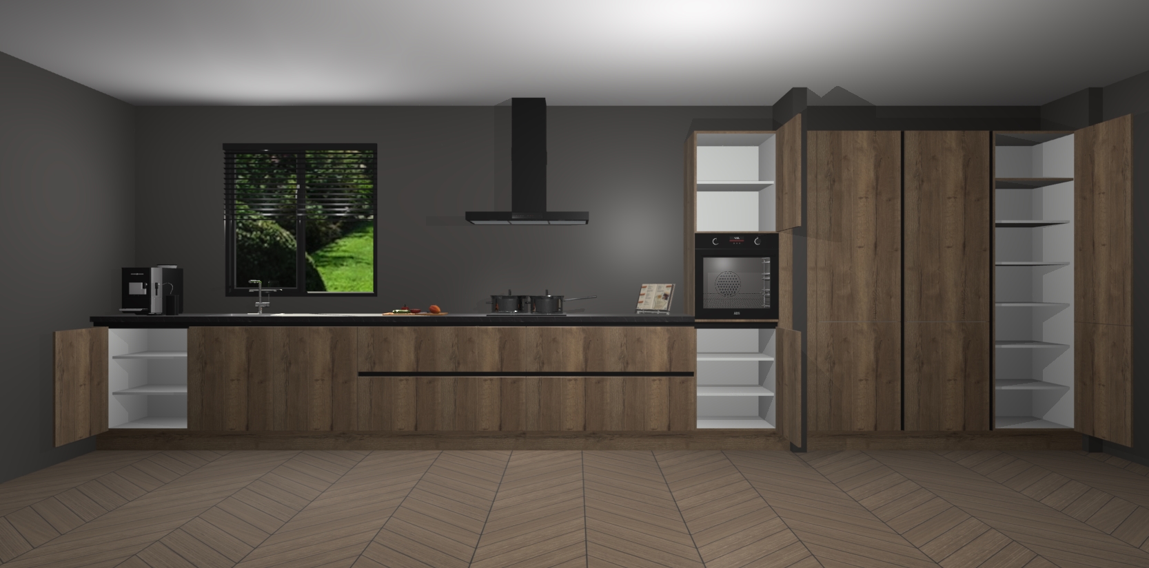 Een stijlvolle en praktische keuken als deze mag gezien worden. Dankzij de prachtige matte afwerking wordt de keuken gemakkelijk het middelpunt van uw huis - hij ziet er geweldig uit onder allerlei lichtomstandigheden, van dag tot nacht!