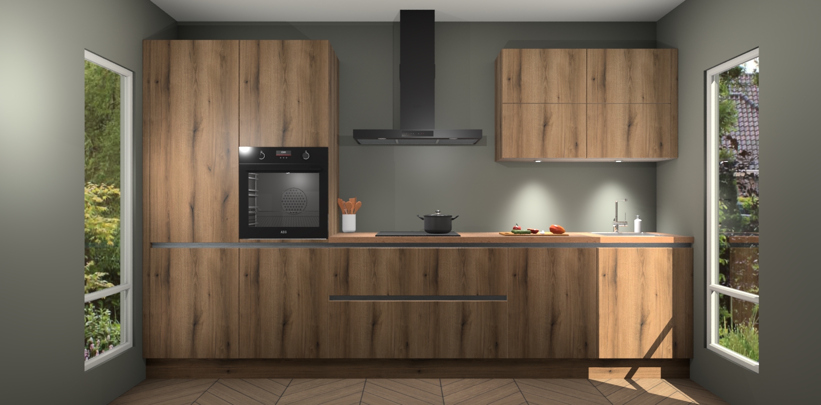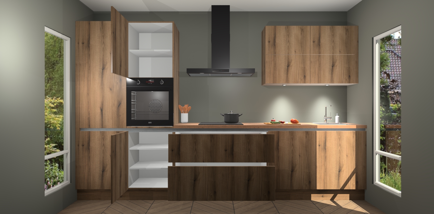 Maak kennis met de nieuwe Golden Eiken greeploze Keuken Parijs - de perfecte designcombinatie van gemak, moderne elegantie en ultramodern design. Met een gemakkelijk te reinigen Golden Eiken afwerking, zal de slankheid van deze keuken zeker een vleugje luxe toevoegen aan elke ruimte die hij inneemt.
