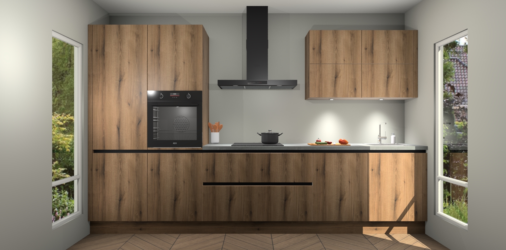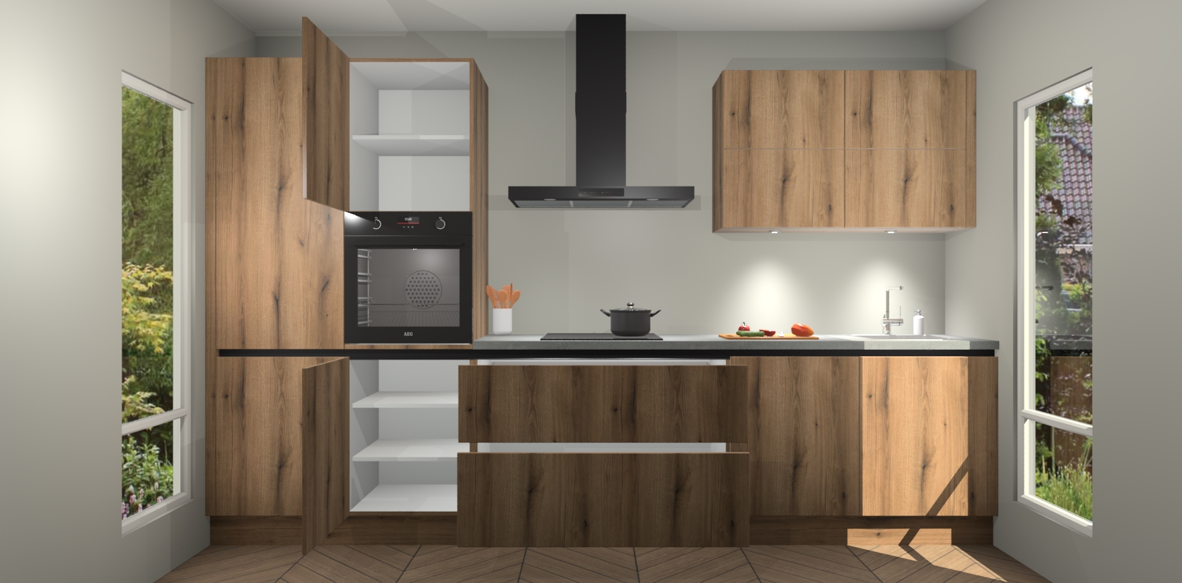 Maak kennis met de nieuwe Golden Eiken greeploze Keuken Parijs - de perfecte designcombinatie van gemak, moderne elegantie en ultramodern design. Met een gemakkelijk te reinigen Golden Eiken afwerking, zal de slankheid van deze keuken zeker een vleugje luxe toevoegen aan elke ruimte die hij inneemt.