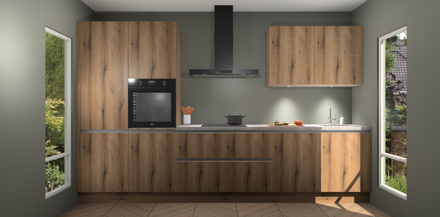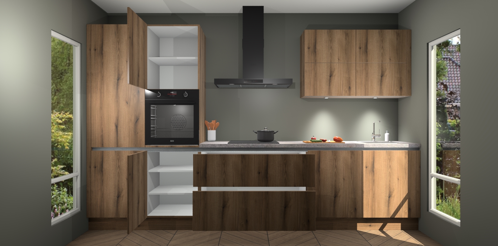 Maak kennis met de nieuwe Golden Eiken greeploze Keuken Parijs - de perfecte designcombinatie van gemak, moderne elegantie en ultramodern design. Met een gemakkelijk te reinigen Golden Eiken afwerking, zal de slankheid van deze keuken zeker een vleugje luxe toevoegen aan elke ruimte die hij inneemt.