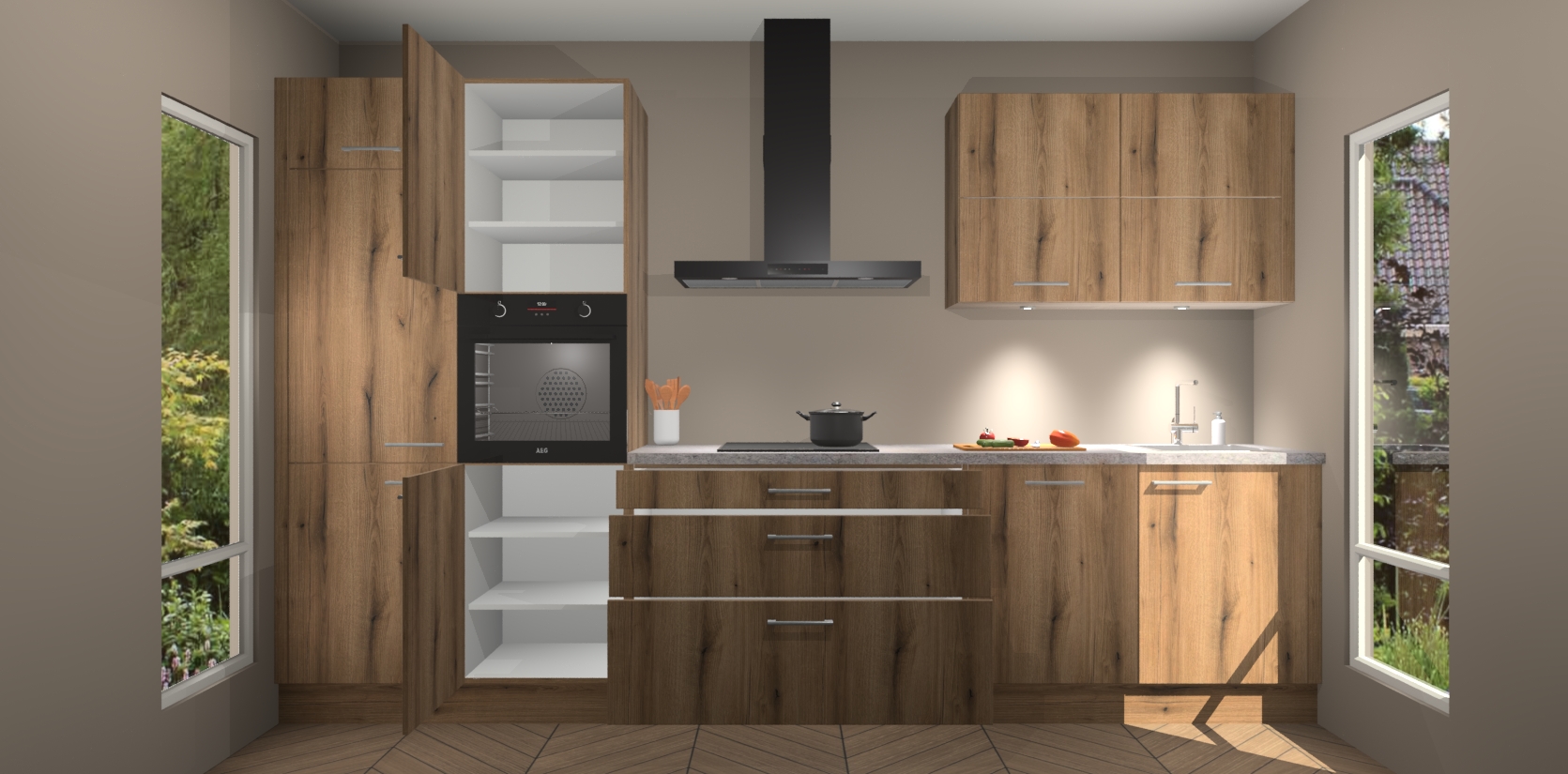 Maak kennis met de nieuwe Golden Eiken Keuken Parijs - de perfecte designcombinatie van gemak, moderne elegantie en ultramodern design. Met een gemakkelijk te reinigen Golden Eiken afwerking, zal de slankheid van deze keuken zeker een vleugje luxe toevoegen aan elke ruimte die hij inneemt.