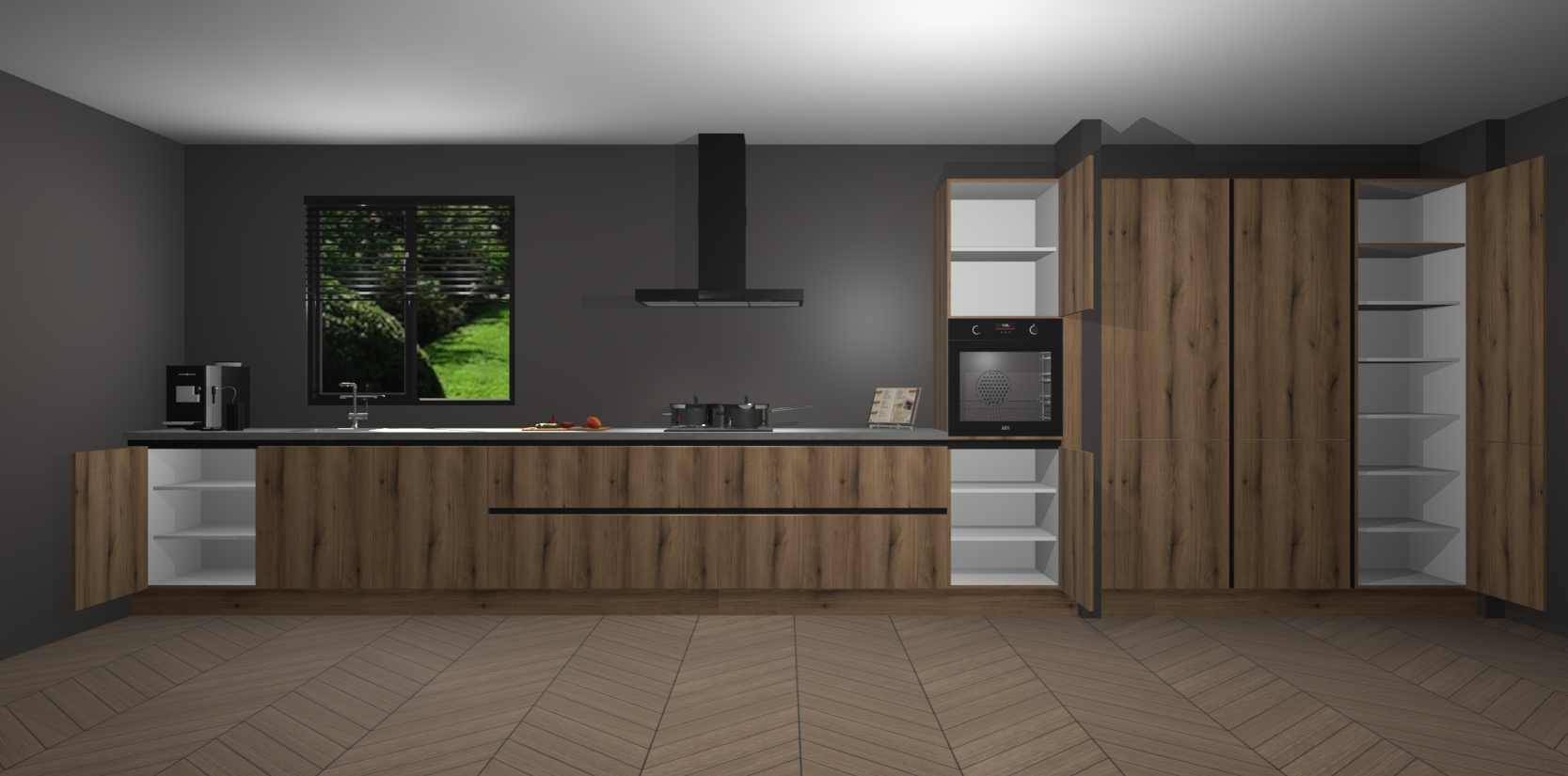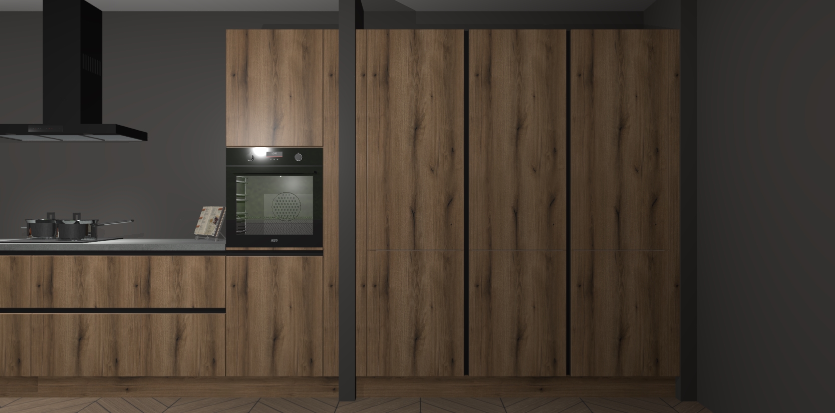 Een stijlvolle en praktische keuken als deze mag gezien worden. Dankzij de prachtige matte afwerking wordt de keuken gemakkelijk het middelpunt van uw huis - hij ziet er geweldig uit onder allerlei lichtomstandigheden, van dag tot nacht!