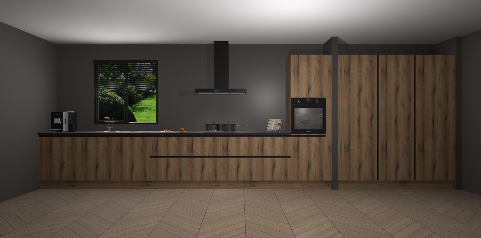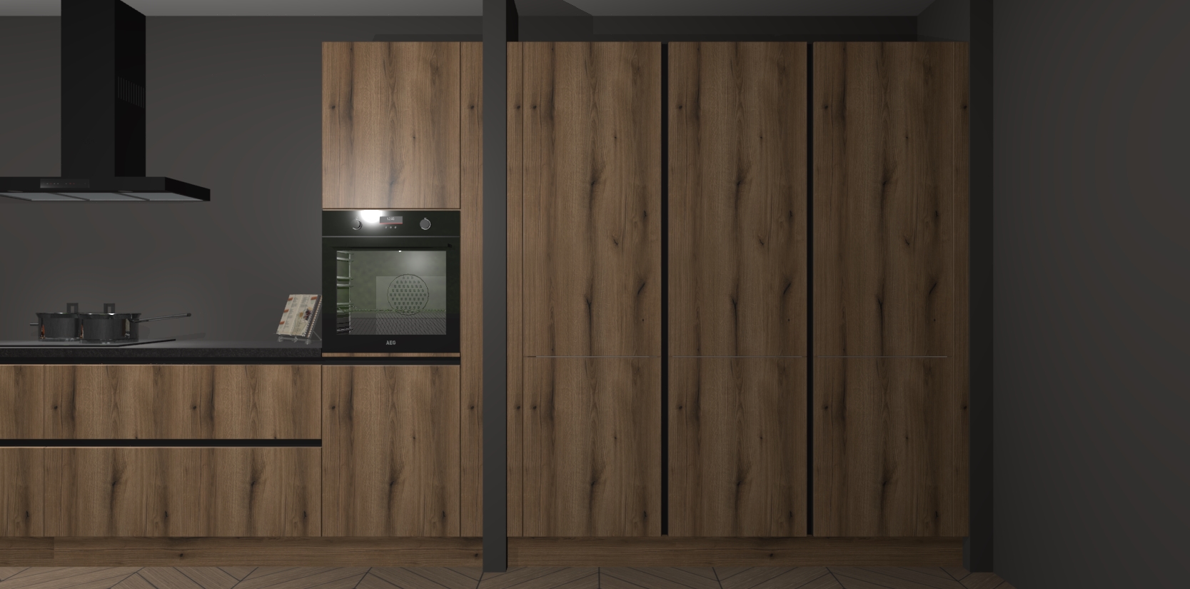 Een stijlvolle en praktische keuken als deze mag gezien worden. Dankzij de prachtige matte afwerking wordt de keuken gemakkelijk het middelpunt van uw huis - hij ziet er geweldig uit onder allerlei lichtomstandigheden, van dag tot nacht!