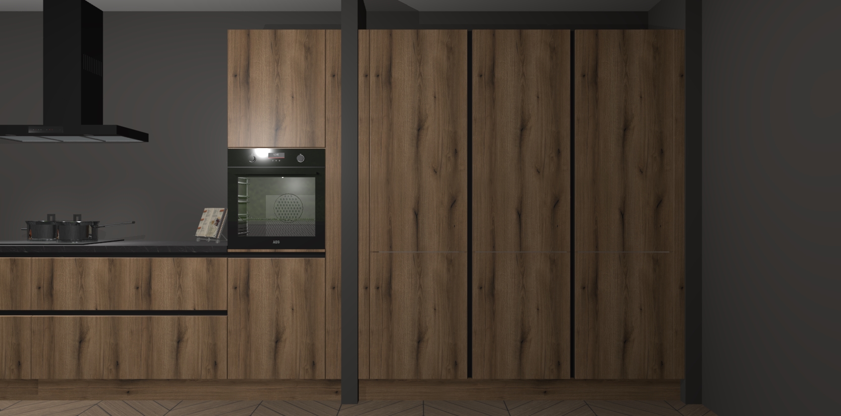 Een stijlvolle en praktische keuken als deze mag gezien worden. Dankzij de prachtige matte afwerking wordt de keuken gemakkelijk het middelpunt van uw huis - hij ziet er geweldig uit onder allerlei lichtomstandigheden, van dag tot nacht!