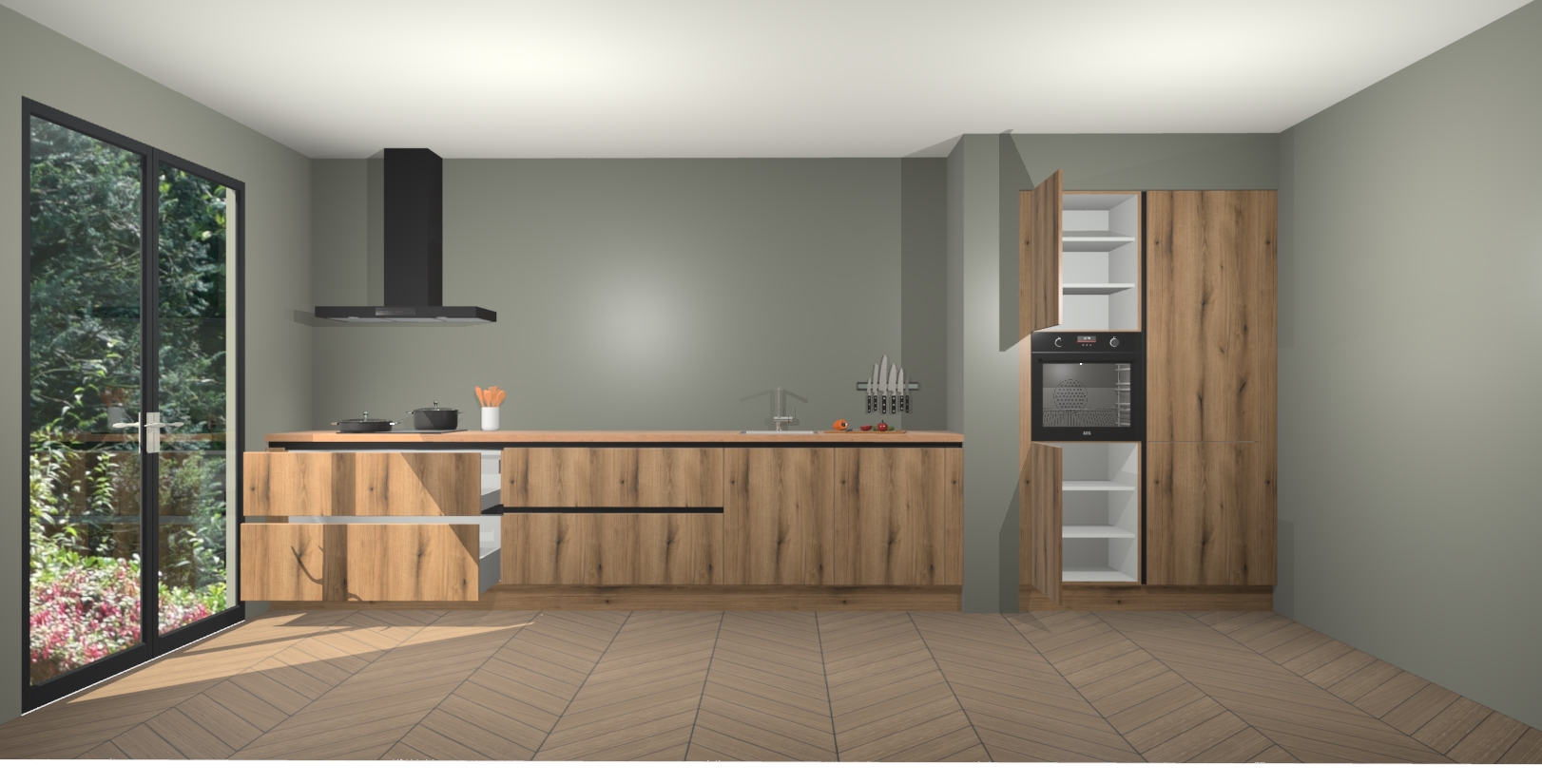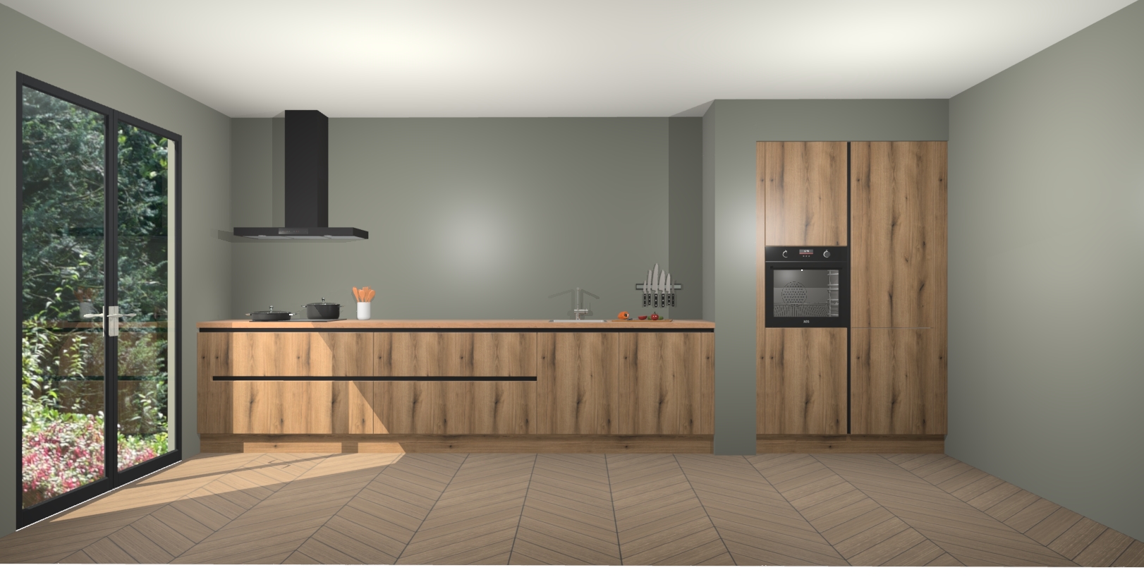 Maak kennis met de Goud Eiken greeploze keuken Calgary - de perfecte aanvulling voor uw moderne keuken! Ervaar tijdloos design, elegantie en een chique uitstraling met onze handgrepen, soft-close deuren en veel opbergruimte. Dit alles wordt aangeboden tegen een vaste lage prijs voor ongeëvenaarde Duitse keukenkwaliteit!
