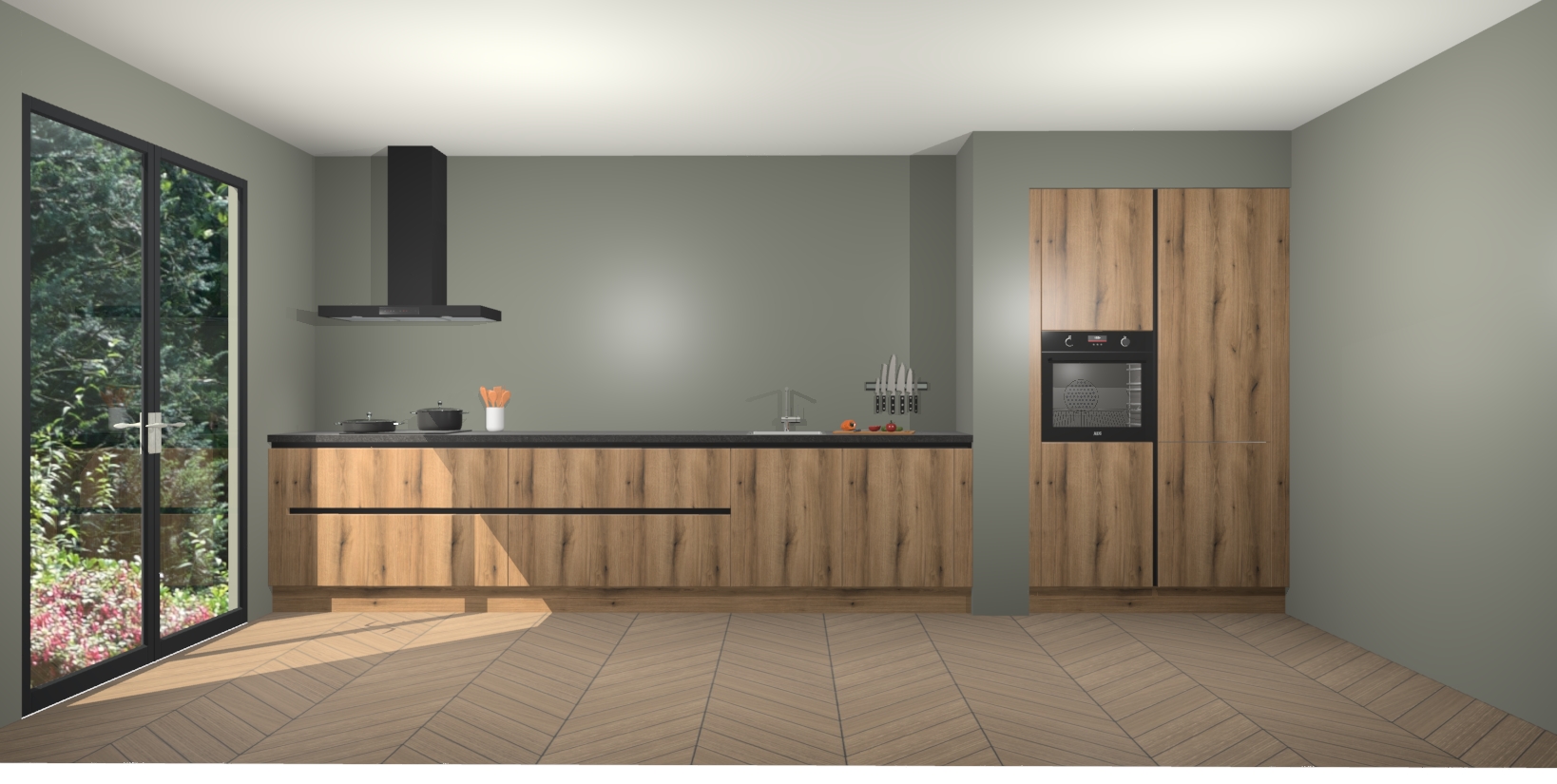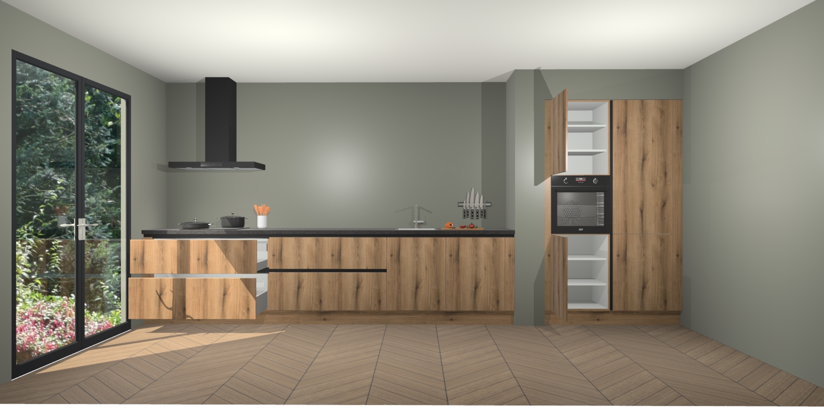 Maak kennis met de Goud Eiken greeploze keuken Calgary - de perfecte aanvulling voor uw moderne keuken! Ervaar tijdloos design, elegantie en een chique uitstraling met onze handgrepen, soft-close deuren en veel opbergruimte. Dit alles wordt aangeboden tegen een vaste lage prijs voor ongeëvenaarde Duitse keukenkwaliteit!