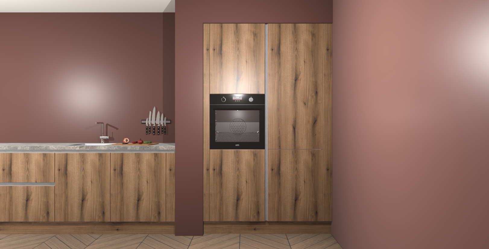Maak kennis met de Goud Eiken greeploze keuken Calgary - de perfecte aanvulling voor uw moderne keuken! Ervaar tijdloos design, elegantie en een chique uitstraling met onze handgrepen, soft-close deuren en veel opbergruimte. Dit alles wordt aangeboden tegen een vaste lage prijs voor ongeëvenaarde Duitse keukenkwaliteit!