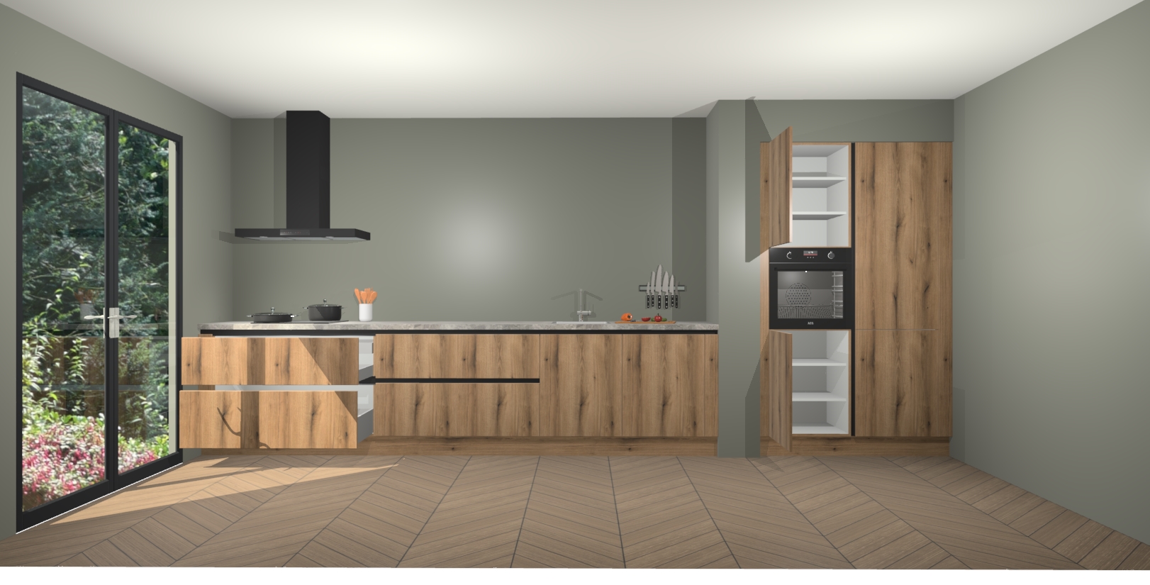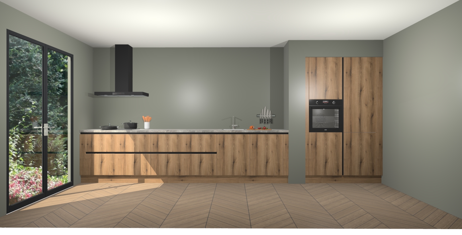 Maak kennis met de Goud Eiken greeploze keuken Calgary - de perfecte aanvulling voor uw moderne keuken! Ervaar tijdloos design, elegantie en een chique uitstraling met onze handgrepen, soft-close deuren en veel opbergruimte. Dit alles wordt aangeboden tegen een vaste lage prijs voor ongeëvenaarde Duitse keukenkwaliteit!